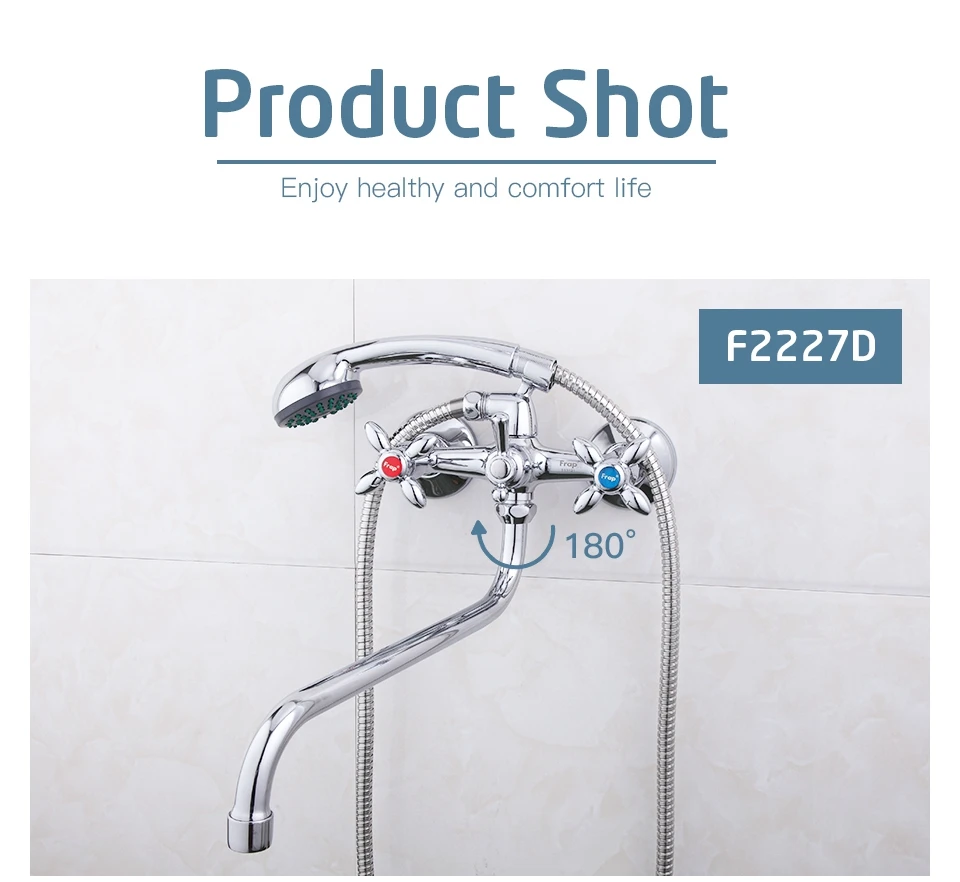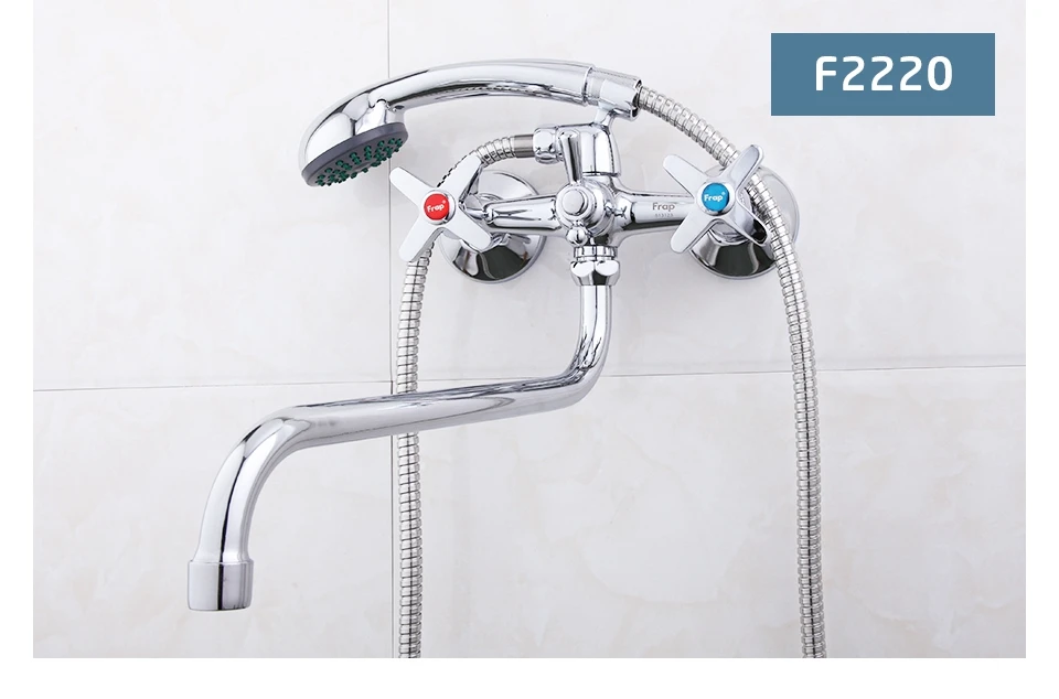 Смеситель для ванны и душа Frap F2208, F2209D, F2220, F2227D, с двойной ручкой, с длинным носом, для горячей и холодной воды