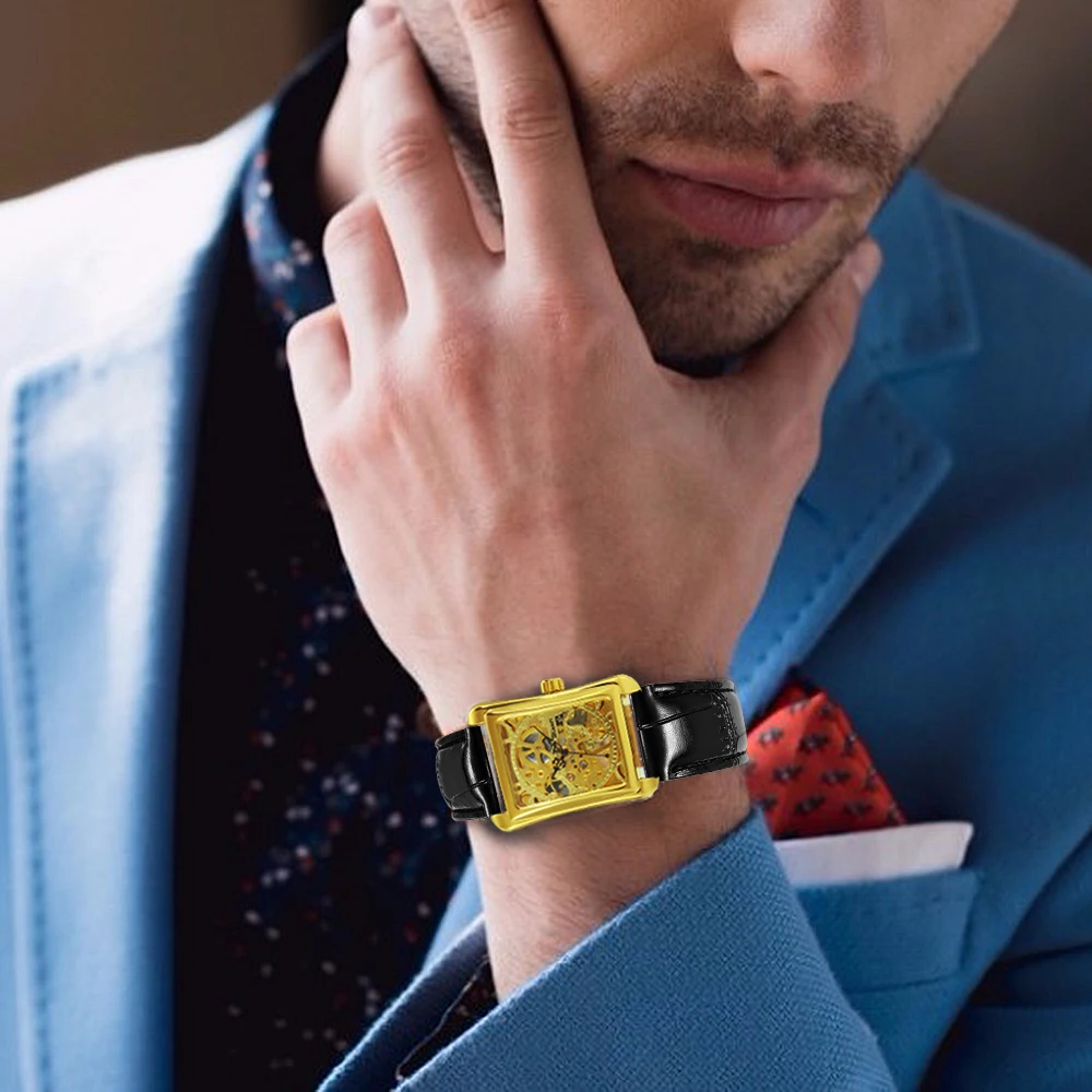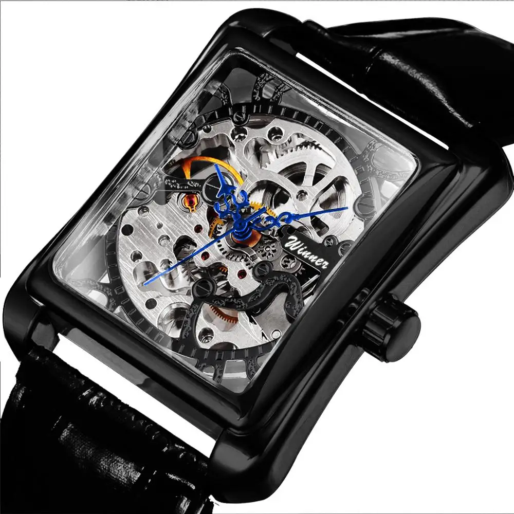 Часы наручные WINNER Мужские механические прямоугольные, брендовые Роскошные, с кожаным ремешком, Прямая поставка, 2021