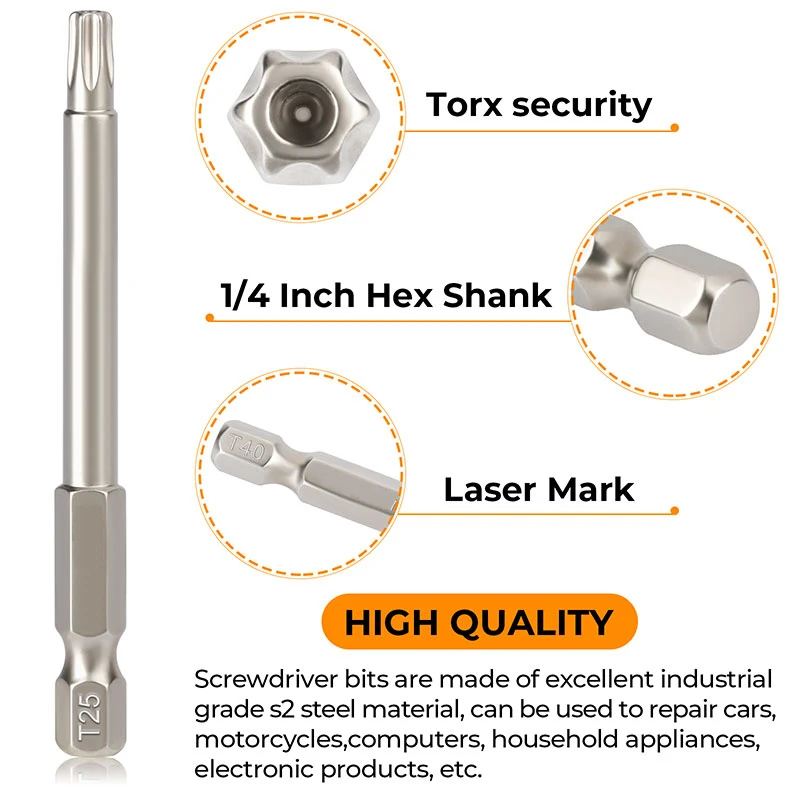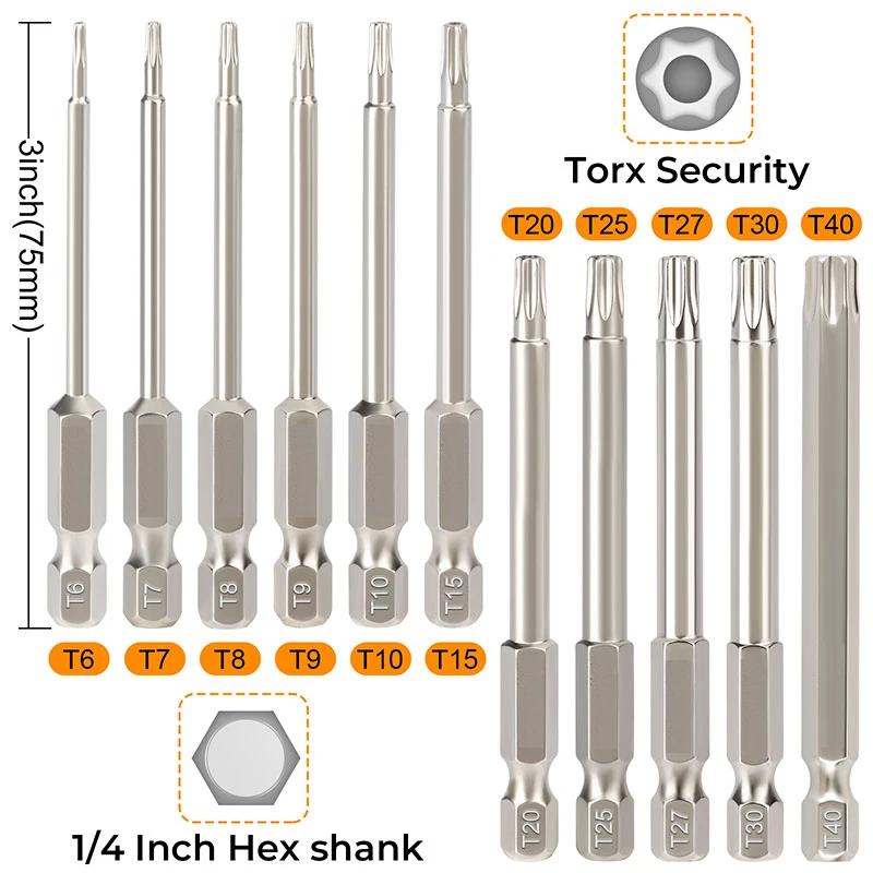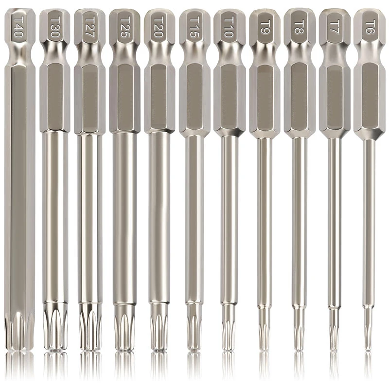 Набор звездообразных головок, 11 шт., 75 мм, S2, стальные магнитные звездообразные сверла, Набор шестигранных отверток T6-T40, 14 дюйма