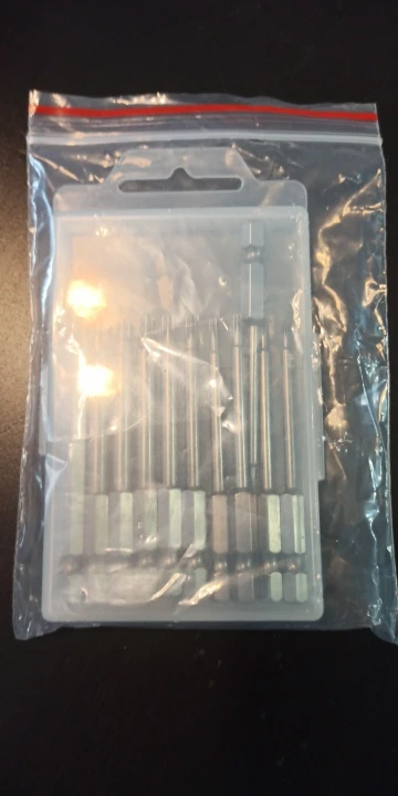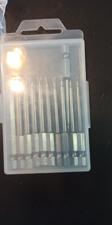 Я получил в хорошей пластиковой коробке 11 штук Torx (с отверстием в центре) T6, T7, T8, T9, T10, T15, T20, T25, T27, T30, T40. Очень доволен. Хорошее качество.
