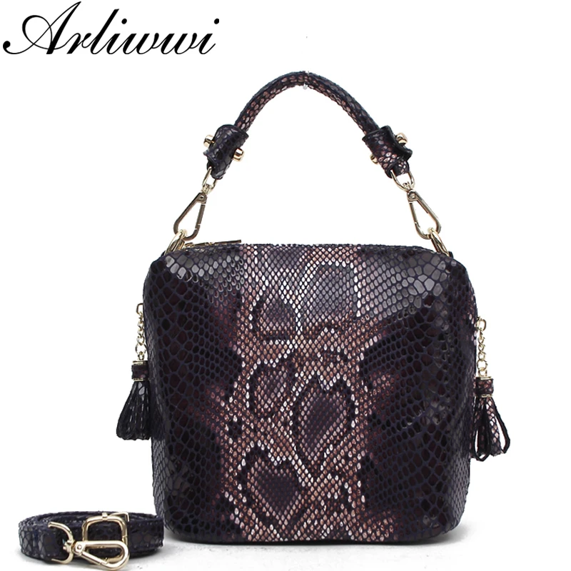 Arliwwi роскошный блестящий Змеиный узор качественная искусственная кожа маленькие дизайнерские Элегантные сумки-тоут через плечо для женщин GPY02