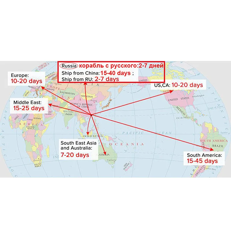 1. Для российских покупателей, у нас есть склад в вашей стране, если вы выбираете доставку товаров из России, которая занимает всего 3-7 дней.
