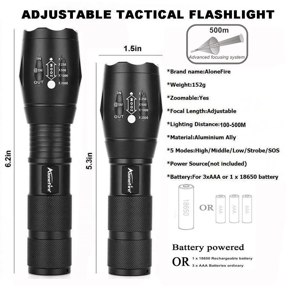 Светодиодный фонарь AloneFire E17 XML T6, водонепроницаемый ультралегкий тактический фонарь с перезаряжаемым аккумулятором 18650