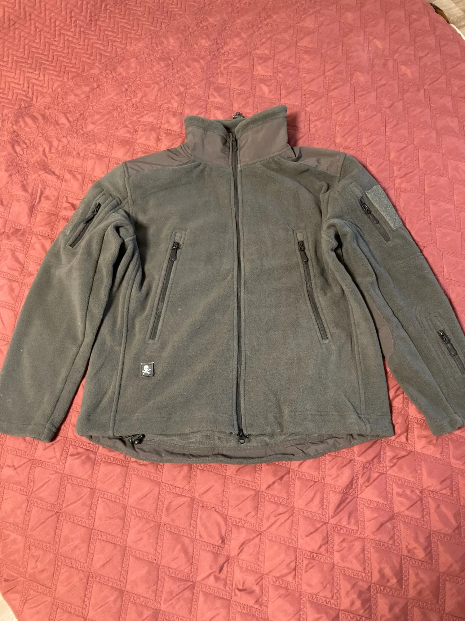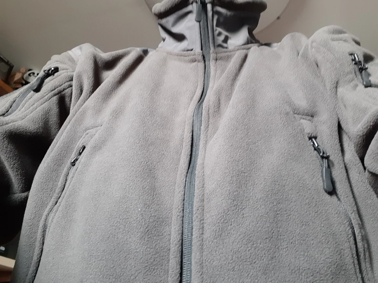 Пришло относительно быстро. Отслеживалось всю дорогу. По размеру как раз. Вот с цветом немного не то. Заказывал серый цвет, а пришло болотного цвета. Пошив качественный. Флис толстый. Карманы на замках-молниях, работают мягко. Грудные карманы беспантовые, размер болшой, а глубина мелкая. Остальные карманы зачётные. Рекомендую.
