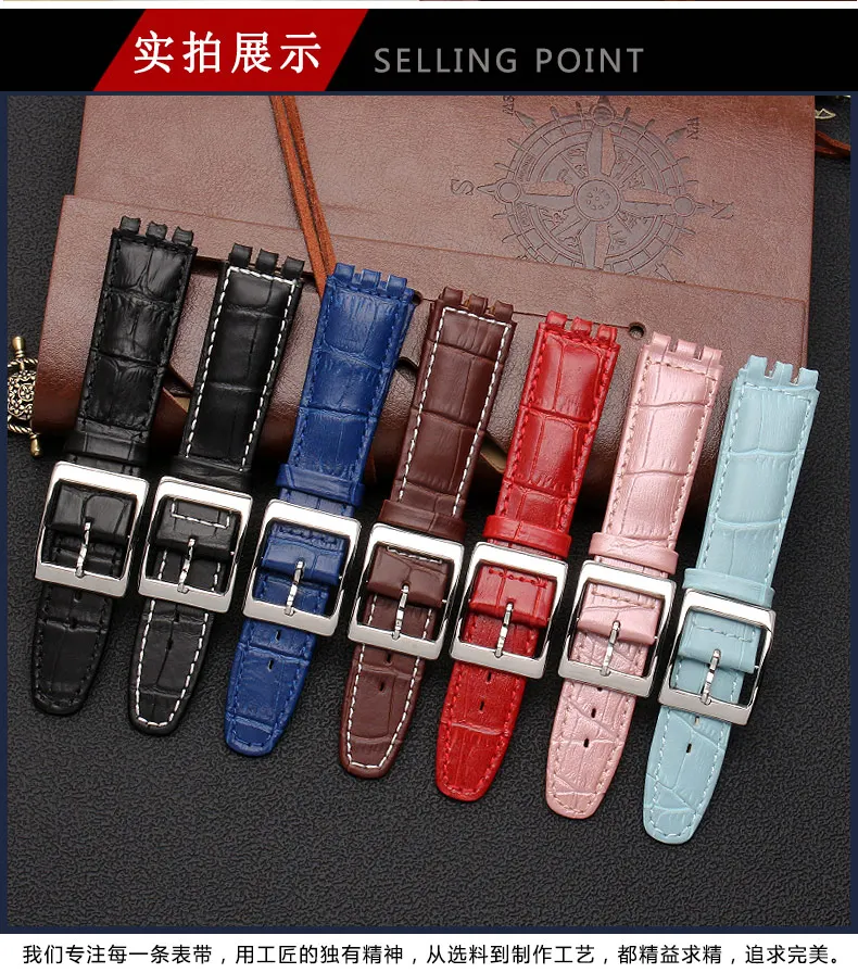 Ремешок для часов, из натуральной кожи, водонепроницаемый, с застежкой, Черный Коричневый Белый, 17 мм 19 мм