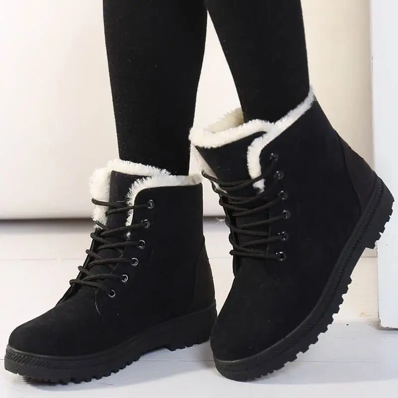 Женские ботинки со шнуровкой, теплые плюшевые ботильоны на шнуровке, с круглым носком, зимняя обувь, 2022