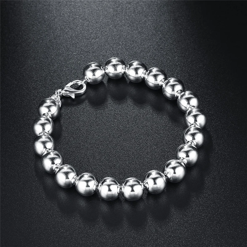 Бусины DOTEFFIL из серебра 925 пробы с полыми круглыми бусинами 8 мм10 мм, серебряный браслет с бусинами 20 см, женское очаровательное модное ювелирное изделие