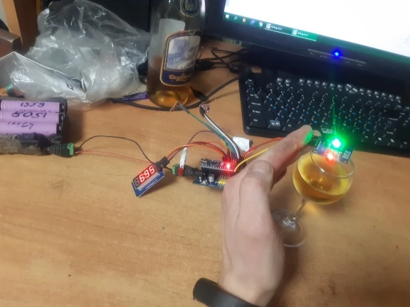 получил за три недели. датчик рабочий, реально чувствительный, калибровать нечем, но поиграться штука приятная. аналоговый и цифровой (дискретный)выходы. аналоговщый через ацп ардуины принимает значение до пяти вольт. в спокойном режиме показывает 150-200... как только бухают в комнате, то повышается до трехсот. если дуть сразу после бокала вина - доходит до 600... регулировка резистором на аналоговый выход не влияет, настраивает порог дискретного выхода под какое-то значение, появляется лог 1 на пине и загорается сзади зеленый светодиод. это говорит о том, что можно датчик использовать самостоятельно без платы или подключить стрелочный индикатор...