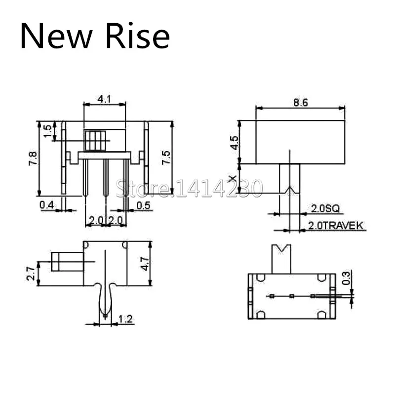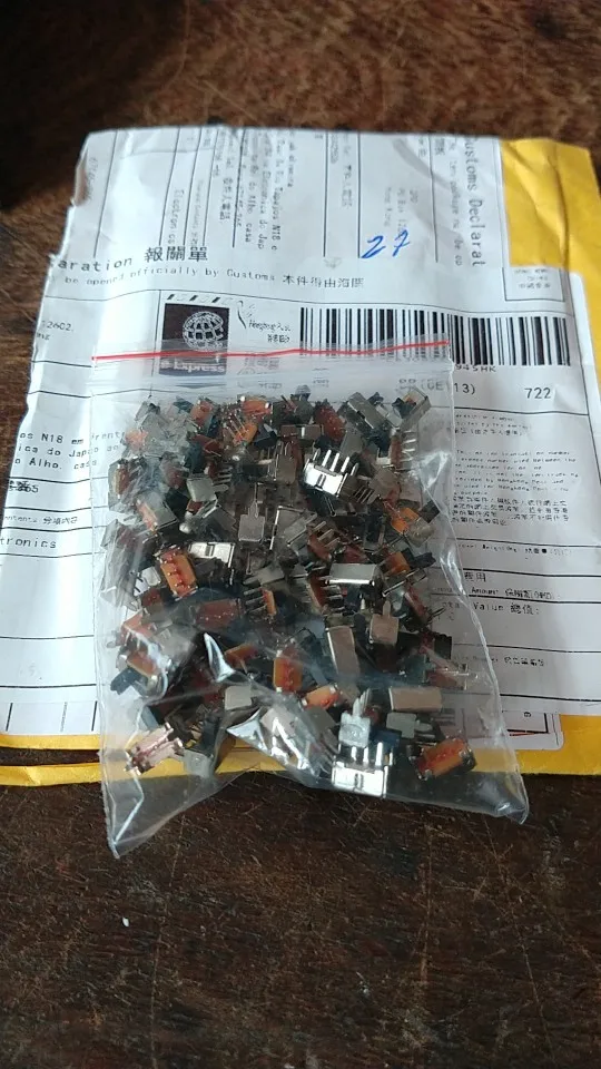 100 шт. 3-контактный PCB 2 позиции 1P2T SPDT Миниатюрный скользящий переключатель, Боковая ручка SK12D07VG4