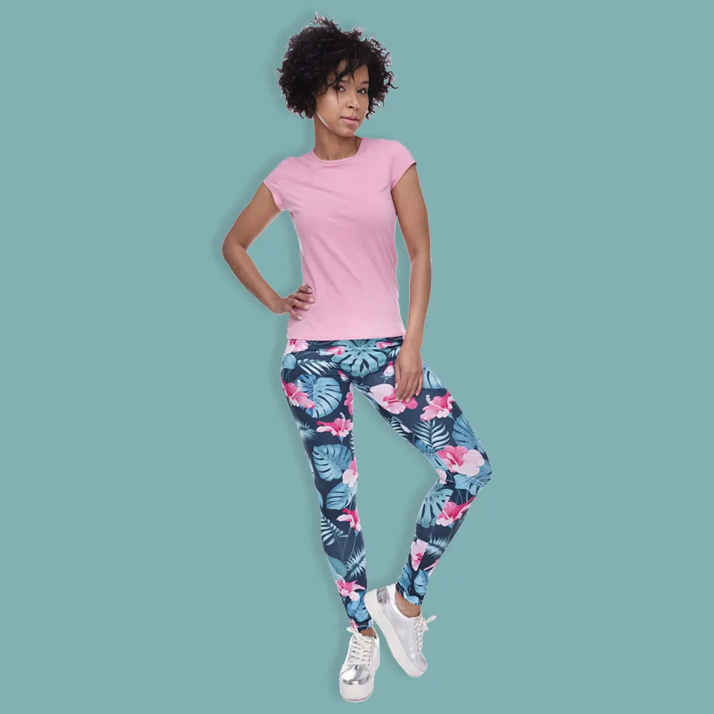Новые женские леггинсы с тропическим розовым цветочным 3D принтом, облегающие джеггинсы, сексуальные леггинсы Tayt, леггинсы для фитнеса, женские мягкие леггинсы для девочек