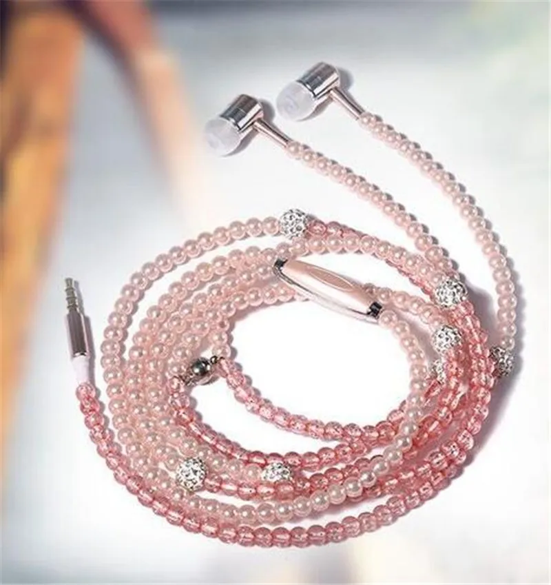 Kecesic модные наушники, роскошные наушники с жемчужным ожерельем, наушники для девочек с микрофоном для iphone samsung, бесплатная доставка
