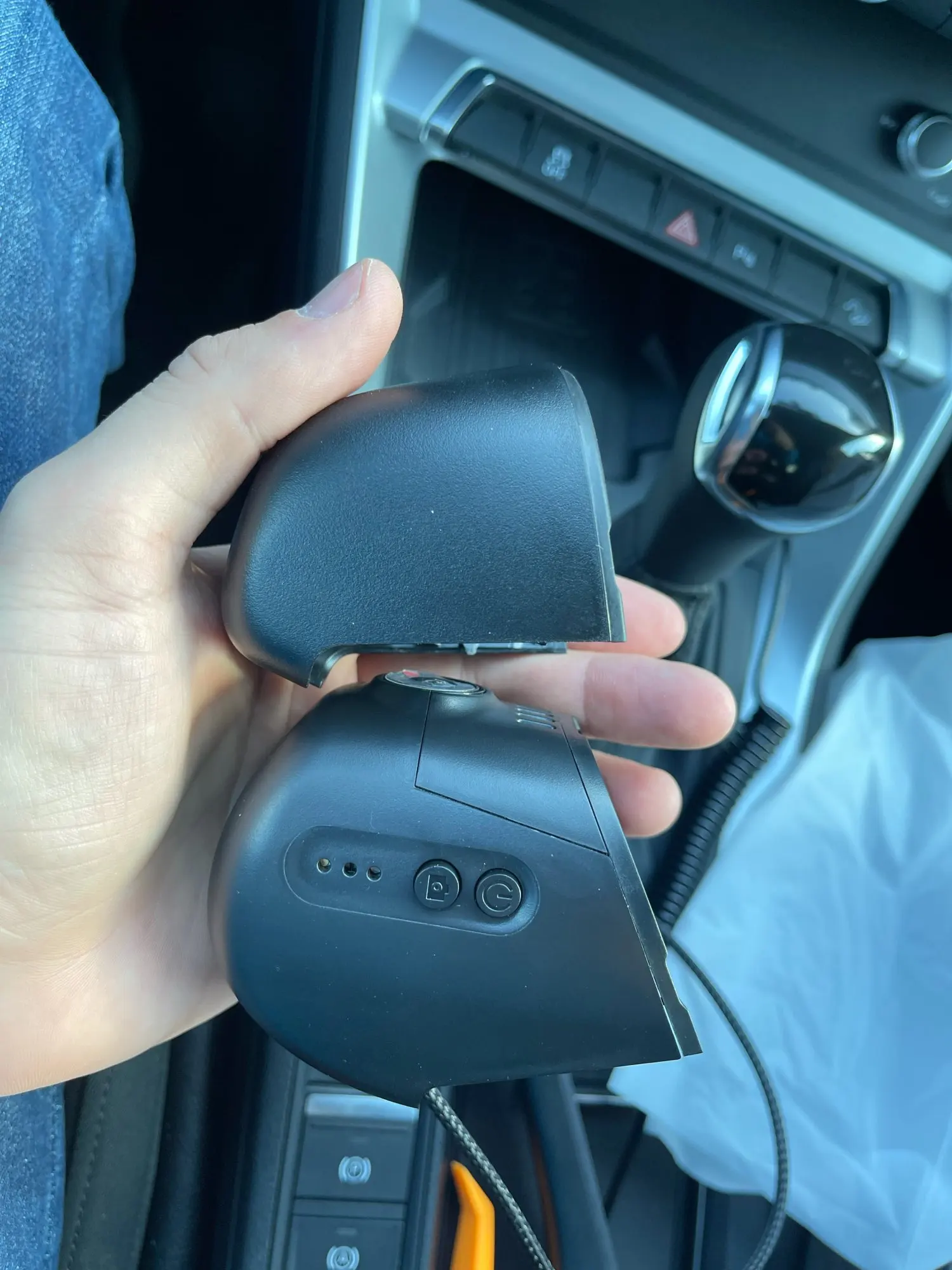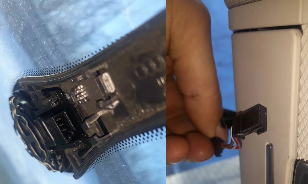 Выньте этот разъем, затем плюс кабель питания между двумя разъемами, чтобы взять Питание. Затем установите Автомобильный видеорегистратор и закрепите заднюю часть чехла для использования.
