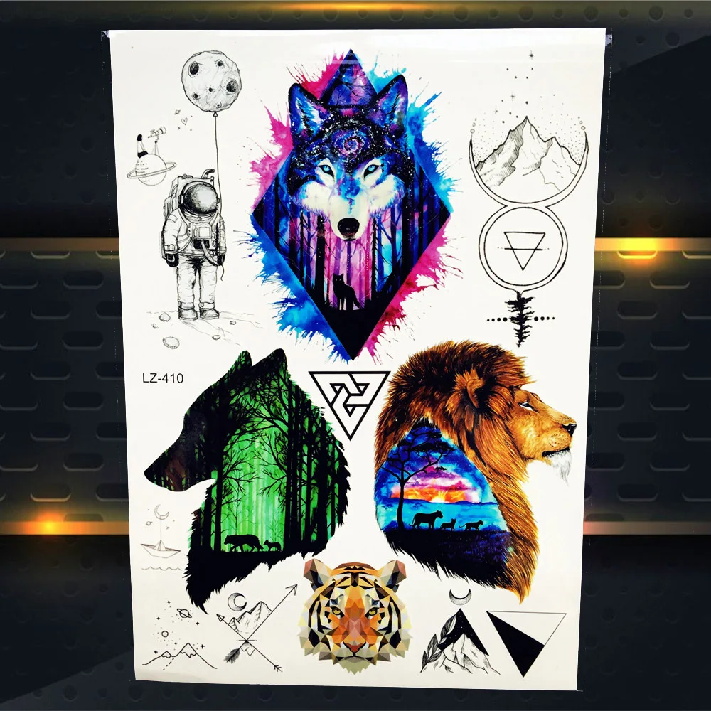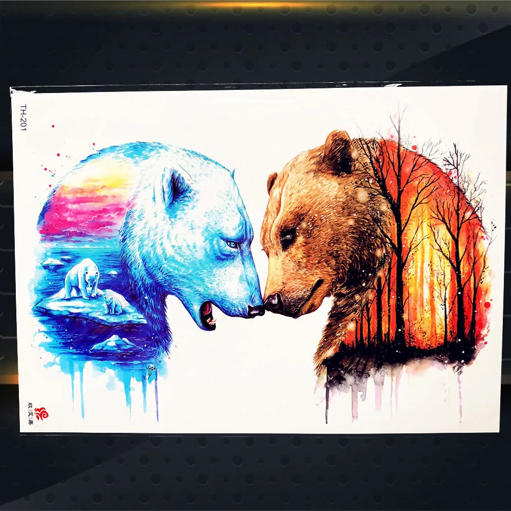Водостойкая временная татуировка Cool Bear Beast King, индийский во...
