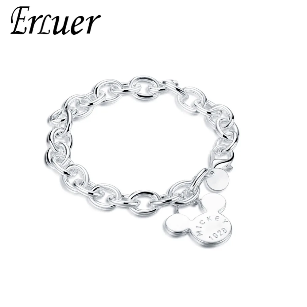 Модный милый детский браслет с подвеской в форме Микки, Очаровательная цепочка с гравировкой букв, Европейский трендовый женский ювелирный браслет для девочек