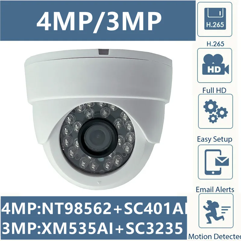 Потолочная IP-камера, 43 Мп, NT98562 + SC401AI, 2560*1440, XM535AI + SC3235, 2304*1296, 24 светодиода, IRC ONVIF VMS XMEYE, P2P, радиатор