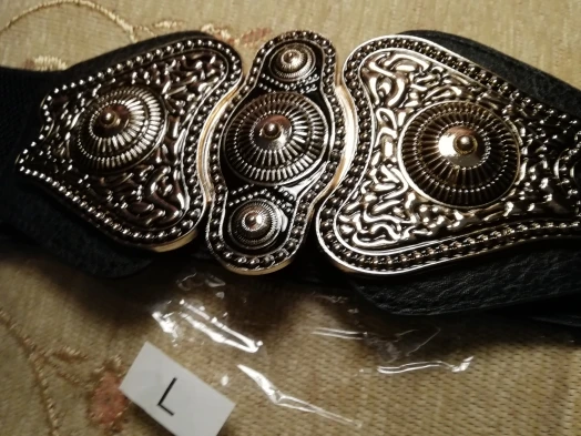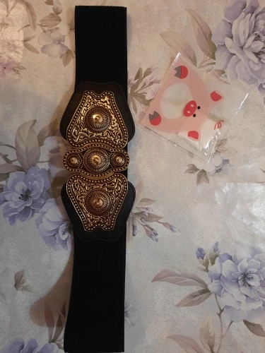пряжка красивая, тяжёлая , приятно носить весь пояс состоит из пряжки и резинки, там нет нормальной ткани, только резинка. понравился, красивый