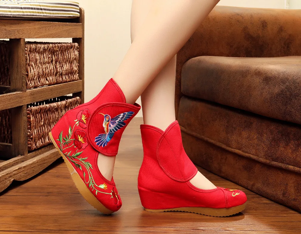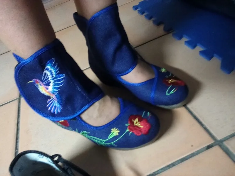 VeowalkЖенские повседневные ботинки с ремешком на щиколотке; Туфли-лодочки Мэри Джейн с вышивкой в китайском стиле; Тканевая обувь