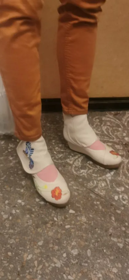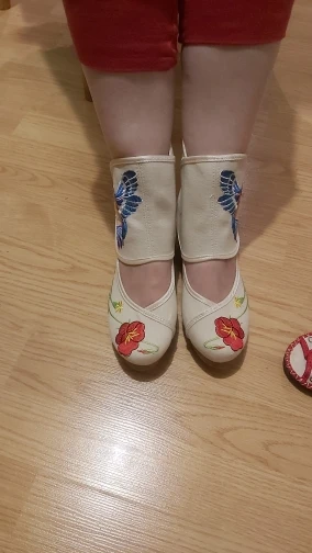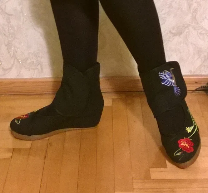 Брала сандалии бежевого цвета, яркие рисунки, как на предложенной картинке в магазине. Застёжка на длинной толстой липучке. На ногу обхватом 22см еле застегивается, приходится приложить некоторые усилия. Но зачёт крепости липучки при ходьбе не расстегивается. Невысокая танкетка в 5см, очень плавный переход к носку, так что даже каблук не сильно чувствуется. На свою ногу 22,5 брала точный размер, чтобы нога не съезжала к носку. Крепкая подошва, с другой стороны мягкая стелька. Есть торчащие нитки на вышивке, отрезать не составит труда. Товаром довольна.
