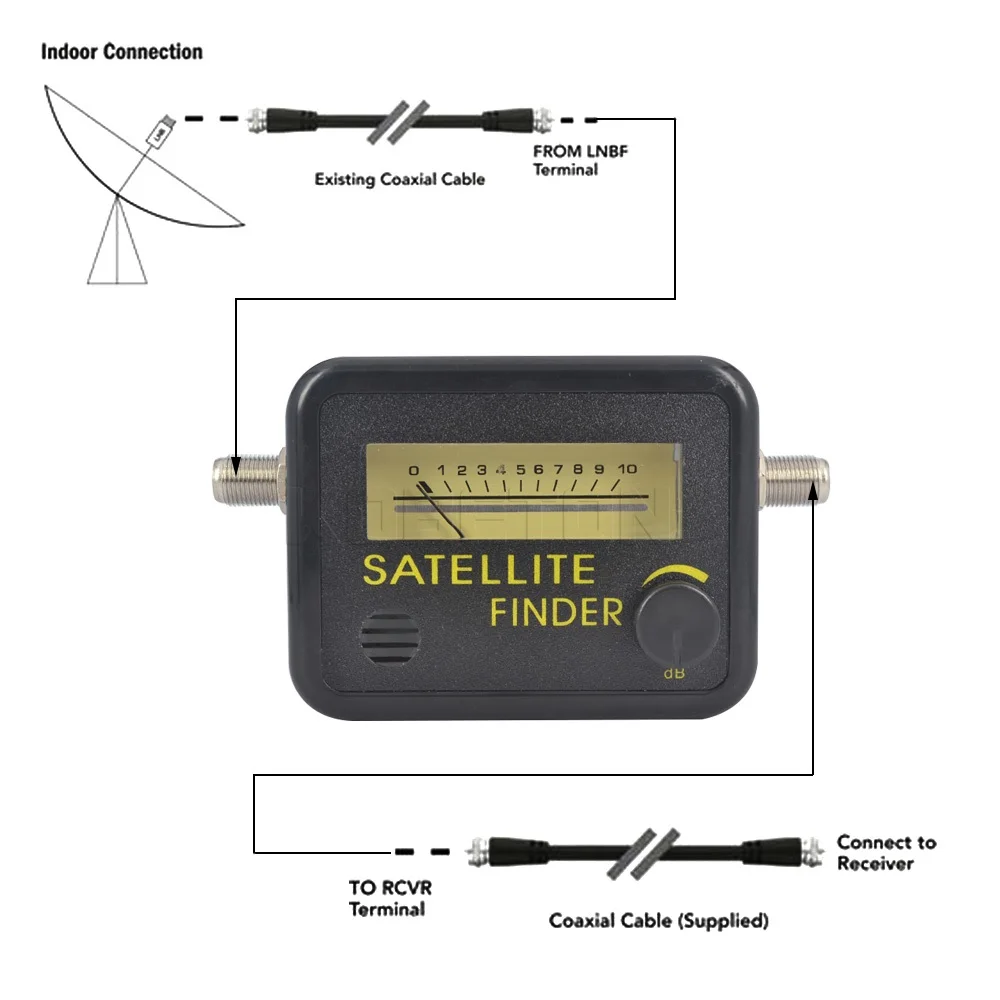 8. Позволяет настроить или максимально увеличить прием спутникового сигнала на тарелке самостоятельно без помощи друга или необходимости совершать несколько поездок на крышу
