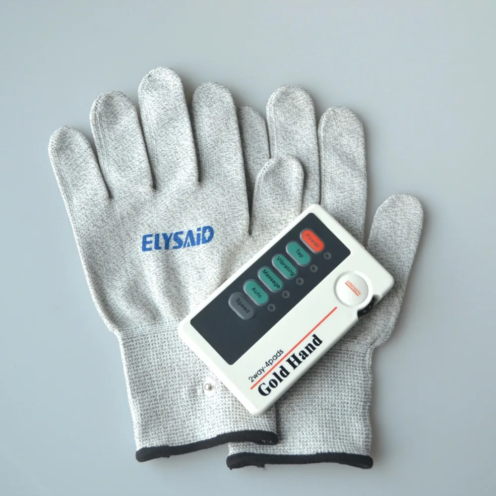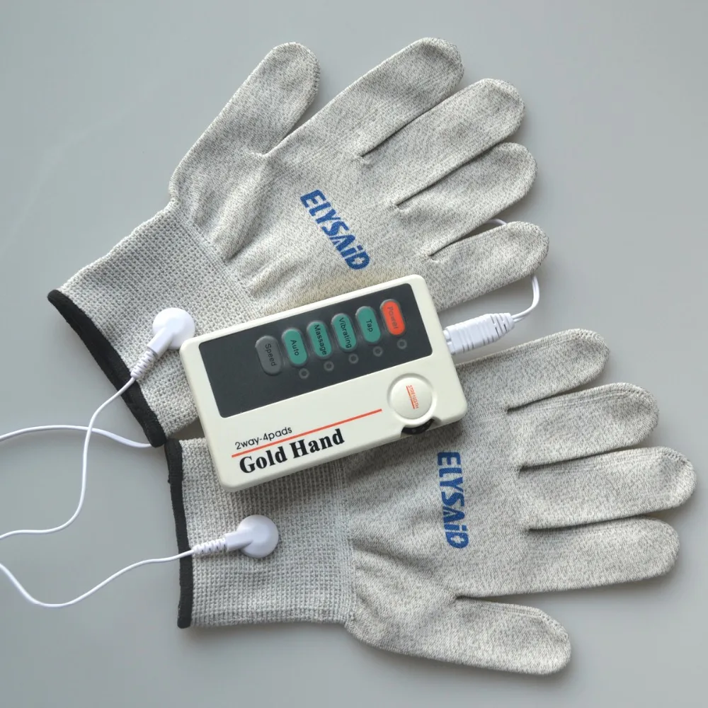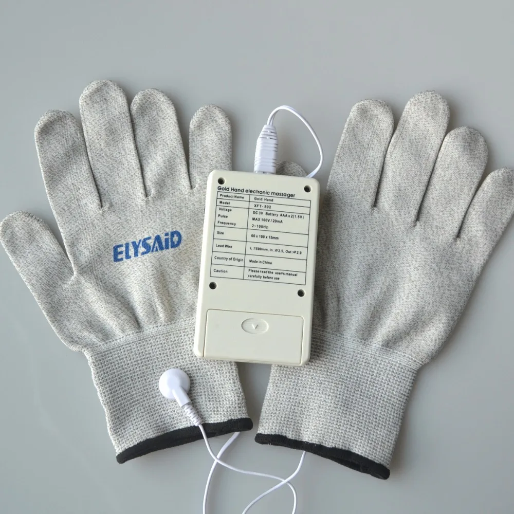 Электрический стимулятор, Низкочастотный цифровой массажер, массажер для тела, 2 способа, 4 накладки, 1 пара проводящих перчаток, XFT-502