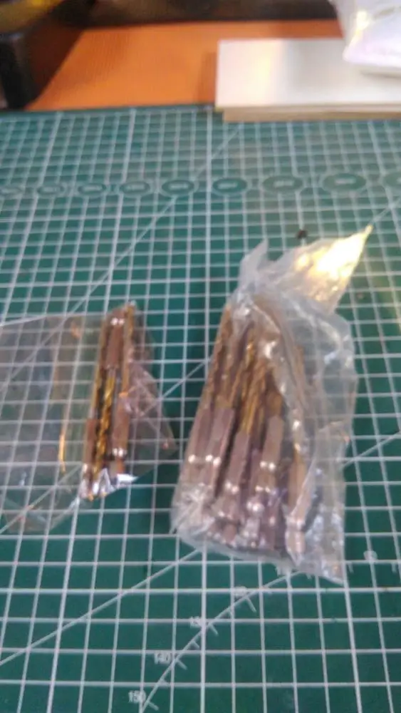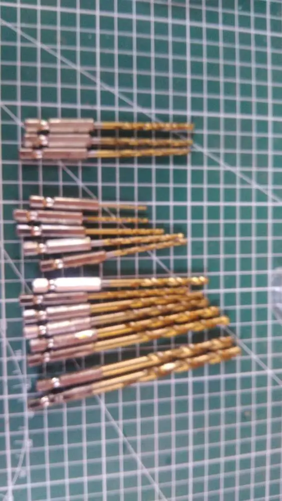 Заказал 8 разных размеров, по 5 штук каждого диаметра сверла Одного сверла не хватает (может по запарке не положили или просчитались) Не критично, но за это 4 балла В работе проверил 3,2 мм и 3,5 мм, пока без нареканий