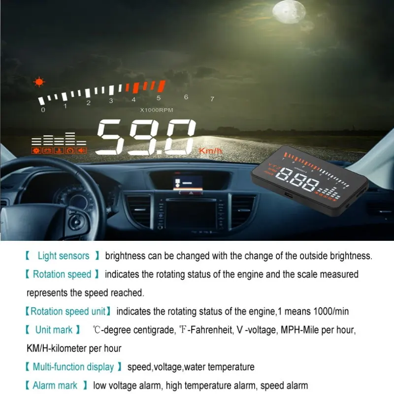 Этот HUD предназначен для отражения информации о вашем автомобиле на лобовое стекло,