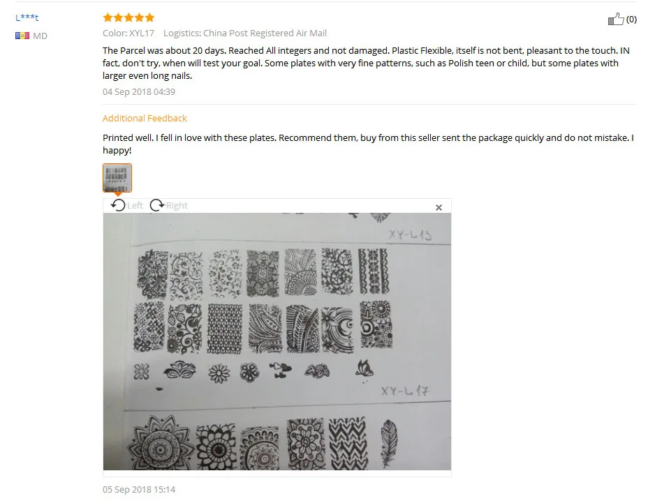 Супер,заказ пришел очень быстро,заказала 10/12,получила 29/12.Пластины очень понравились,печатает даже обычным лаком,буду заказывать еще.Спасибо,рекомендую.
