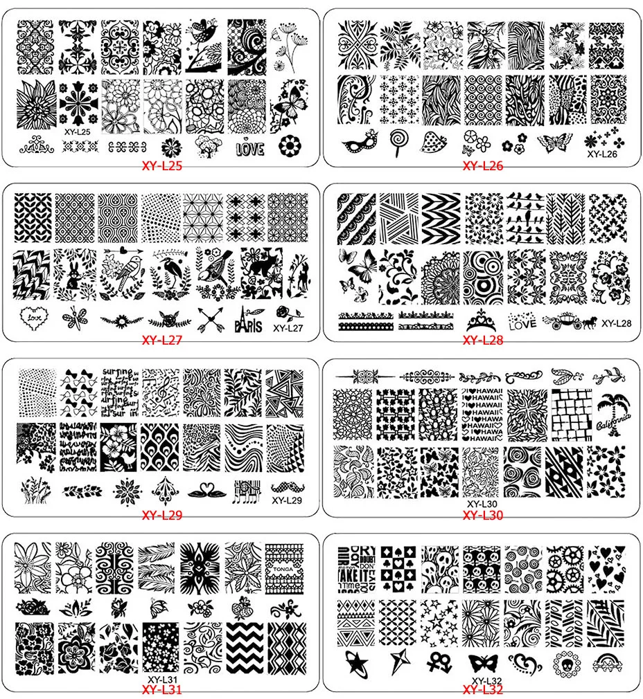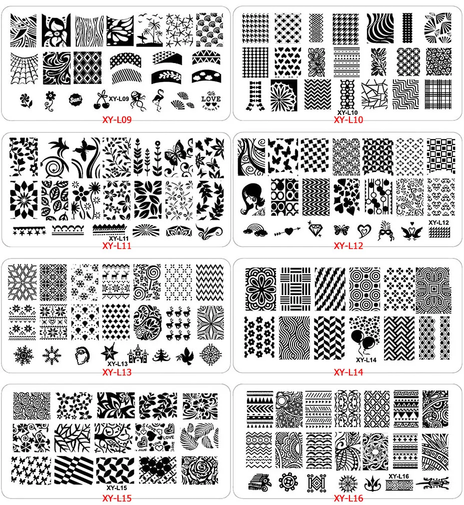 Пластиковые трафареты для маникюра Kimcci пластина для стемпинга для нейл-арта, 12 х6 см, серия XY-L