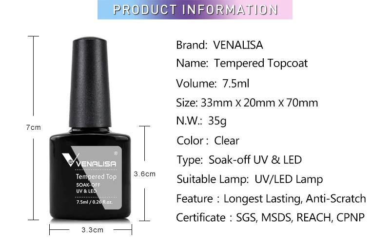 Закаленное топовое покрытие для ногтей Venalisa, 7,5 мл, матовый Праймер, Базовое покрытие, цвет УФ гель лак для ногтей, гель, удаляемый замачиванием, для маникюра