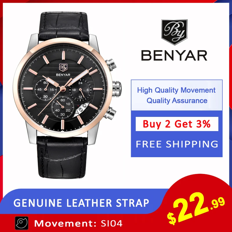 Часы наручные BENYAR мужские с хронографом, модные спортивные брендовые Роскошные деловые кварцевые
