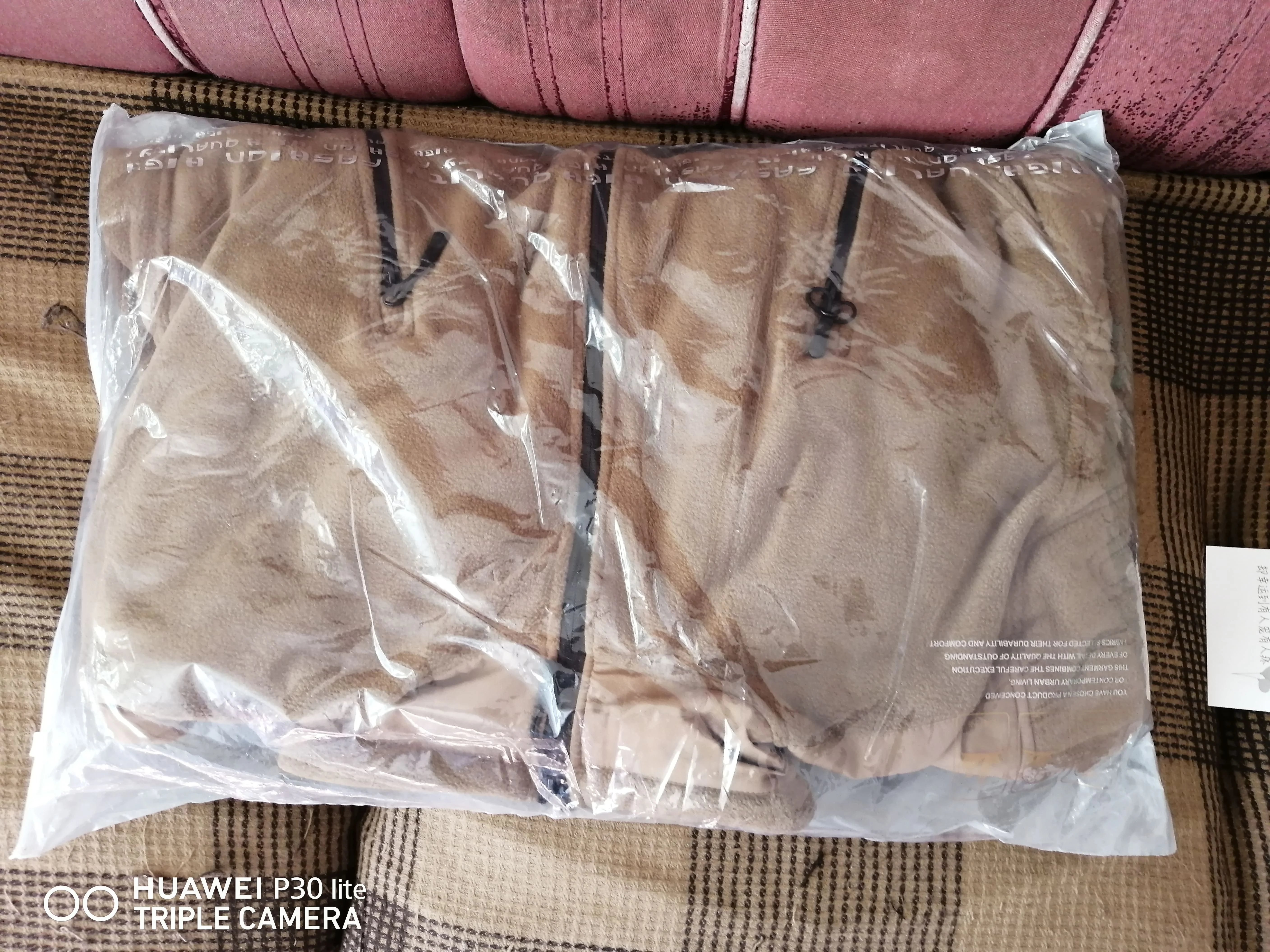 The fleece jacket proportions are way off. Height and sleeve length are fine, but the cuff size is twice as big as my wrist, making them flab down. Missing rubber band over my cuffs to secure my wrist and protect my body against cold and wind. There are no ventilation zippers under sleeves to release humidity from armpits. Fleece material is nice and soft almost like microfleece. Green color is more khaki. Other textile components such as velcros, shock cords, plastic buckles are from average to poor. Design and materials could be better or the price lower. Shipping was fast, 30 days to Europe. No fees or VAT. Whole shopping was an expected compromise. I do not recommend it. There are better variants ypu can find on Aliexpress.