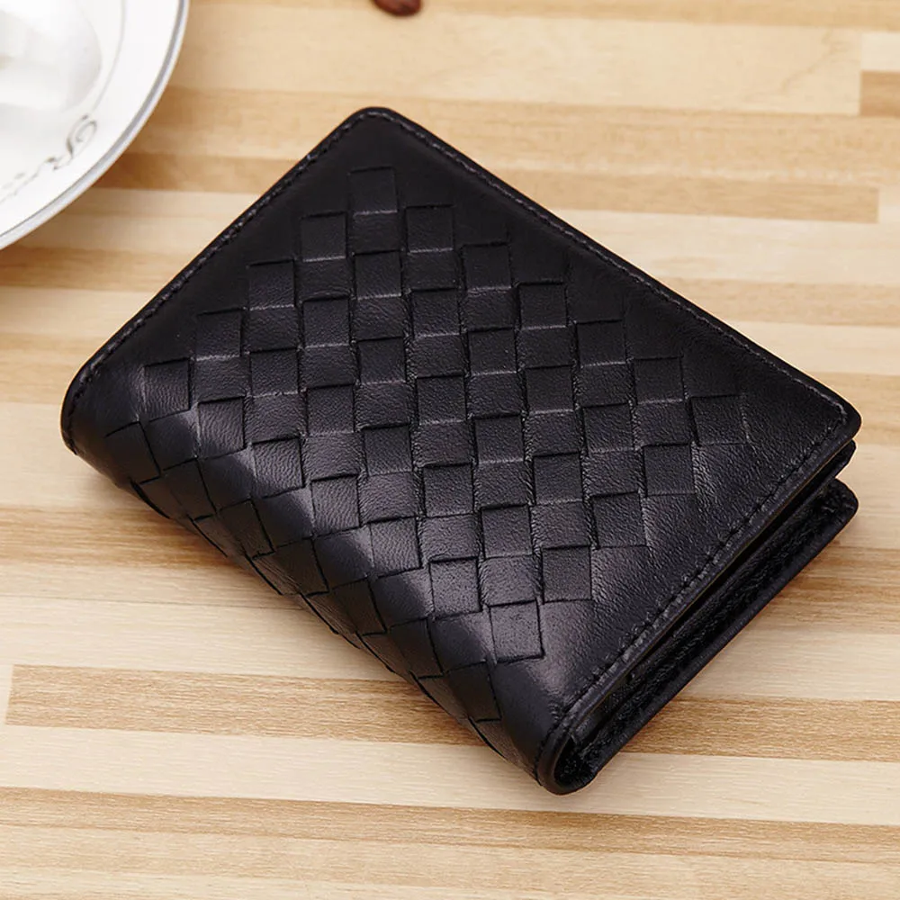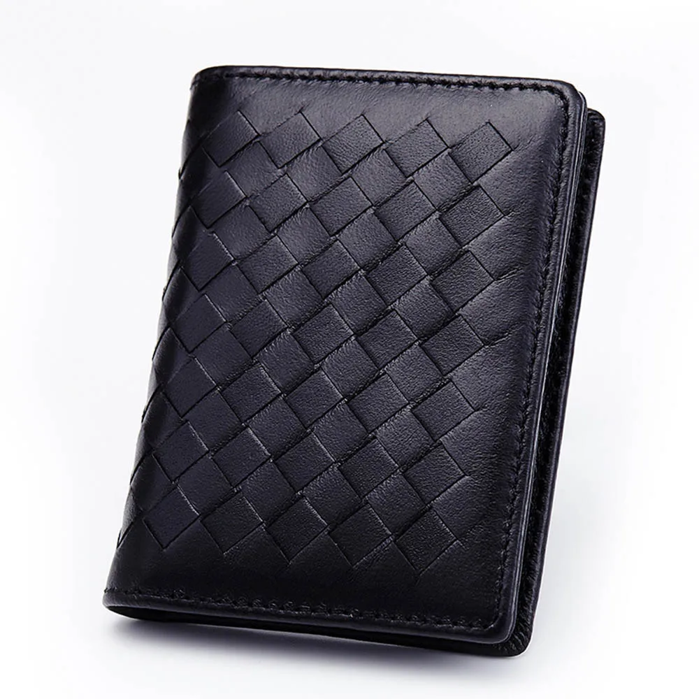 Лидер продаж! Тонкий кошелек из натуральной овечьей кожи с тканым узором, повседневный кошелек для визиток, путешествий, ID-карт, держатель Porte