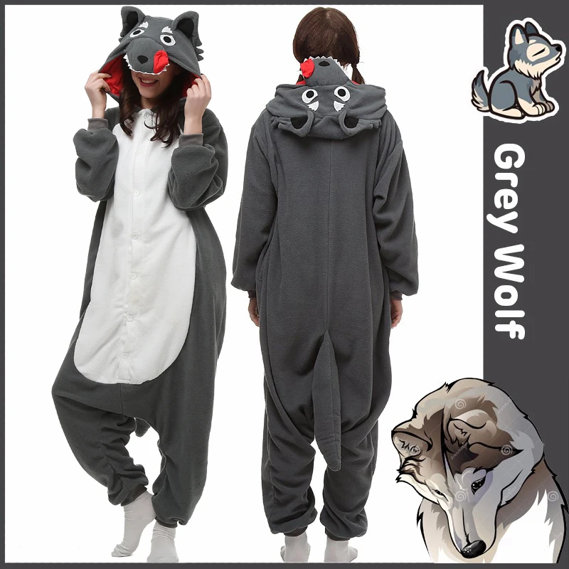 Пижама серого цвета с волком, домашняя одежда для взрослых, подарок на Рождество, Хэллоуин, день рождения, костюм с капюшоном оnesies