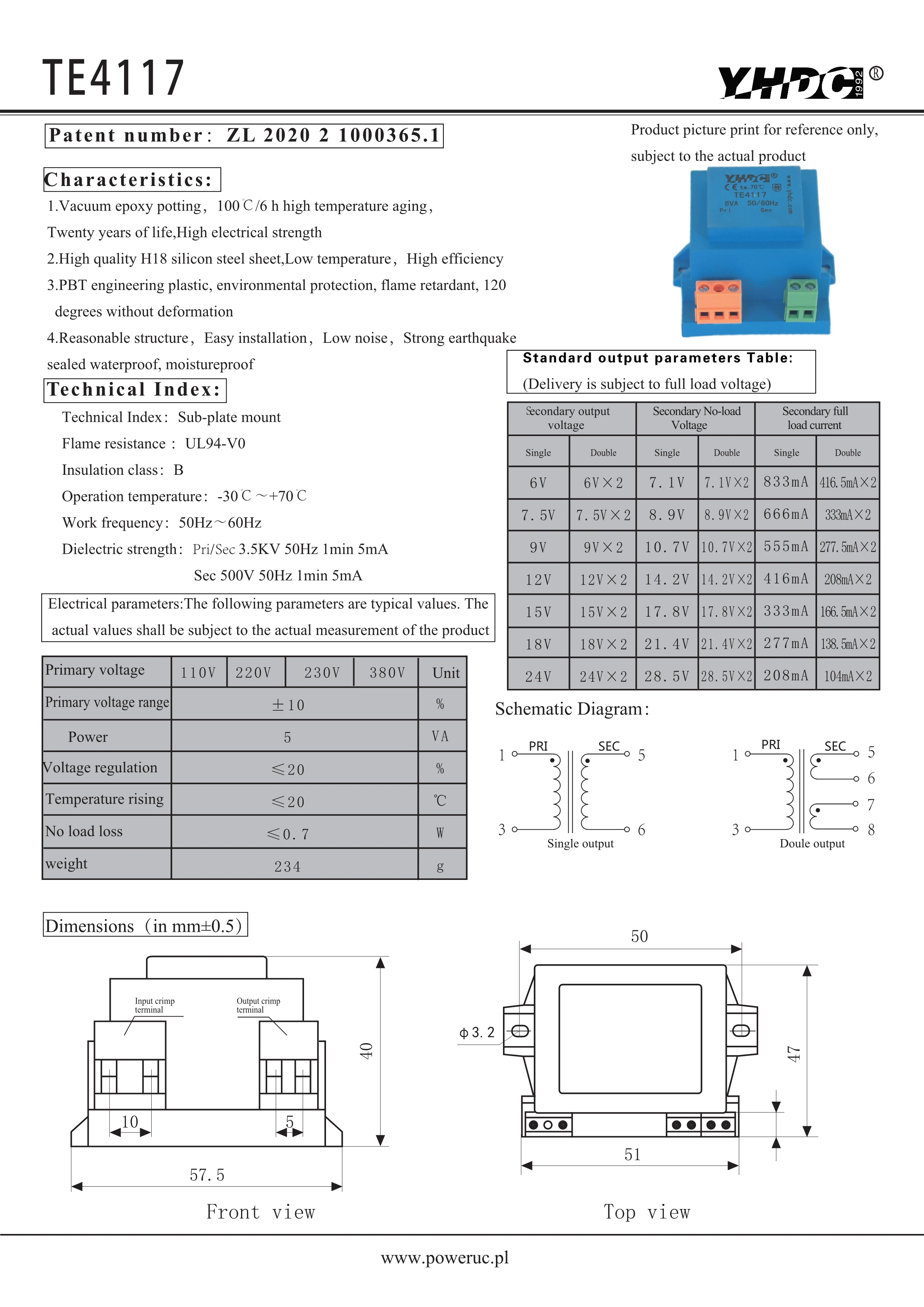Вакуумный эпоксидный изоляционный трансформатор YHDC TE4117, мощность 5 ва, вход 110 В, выход 6 в, 7,5 в, 9 В, 12 В, 15 В, 18 В, 24 В icon star icon star icon star icon star icon star