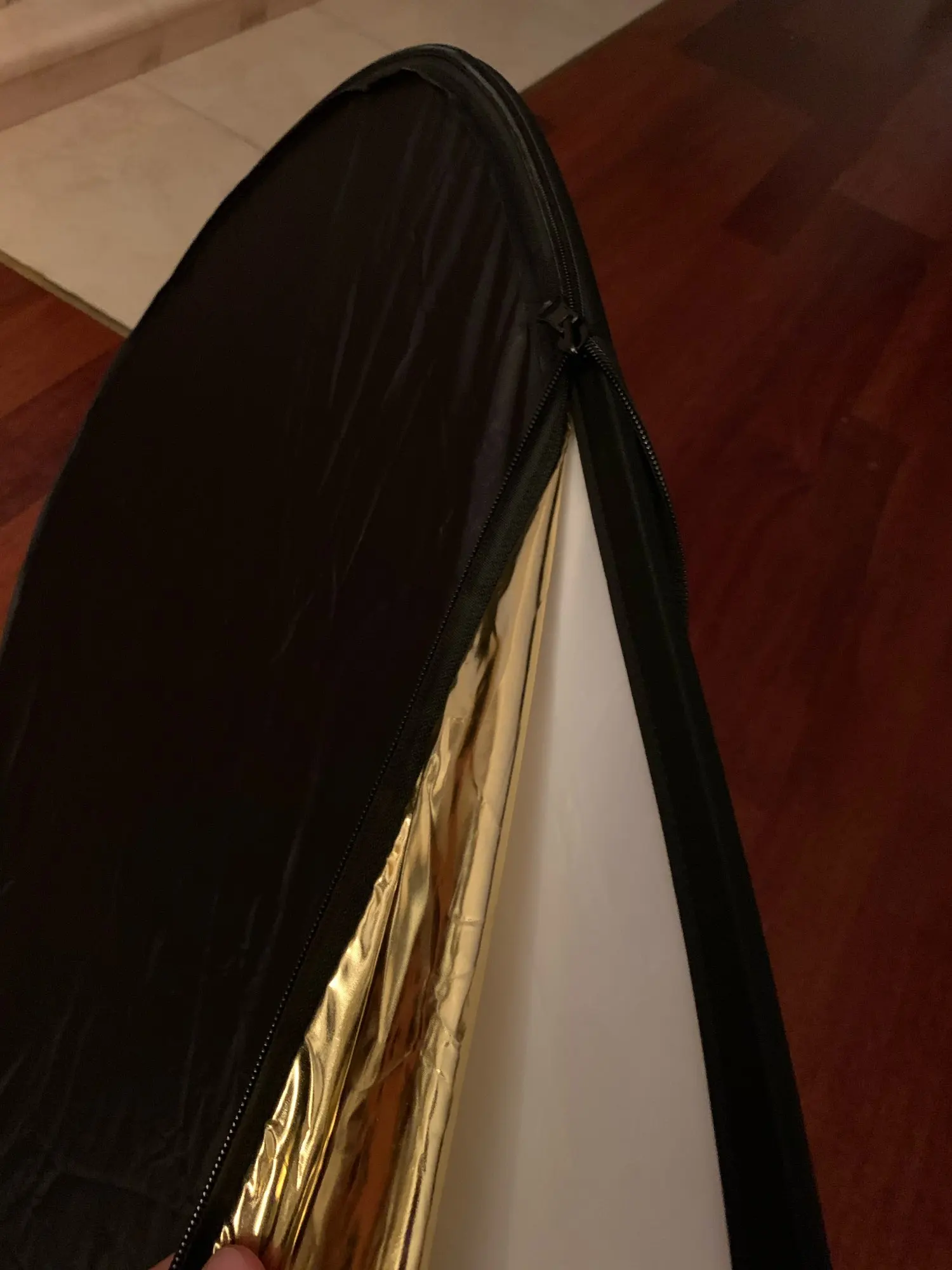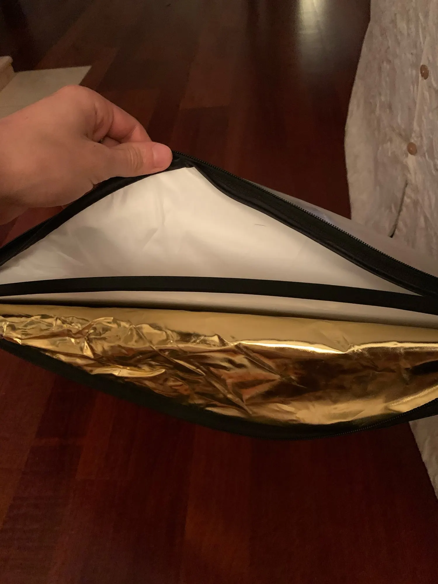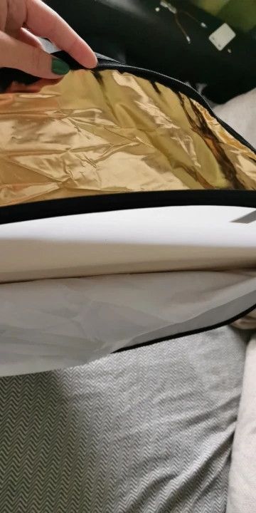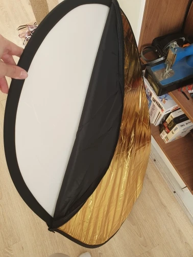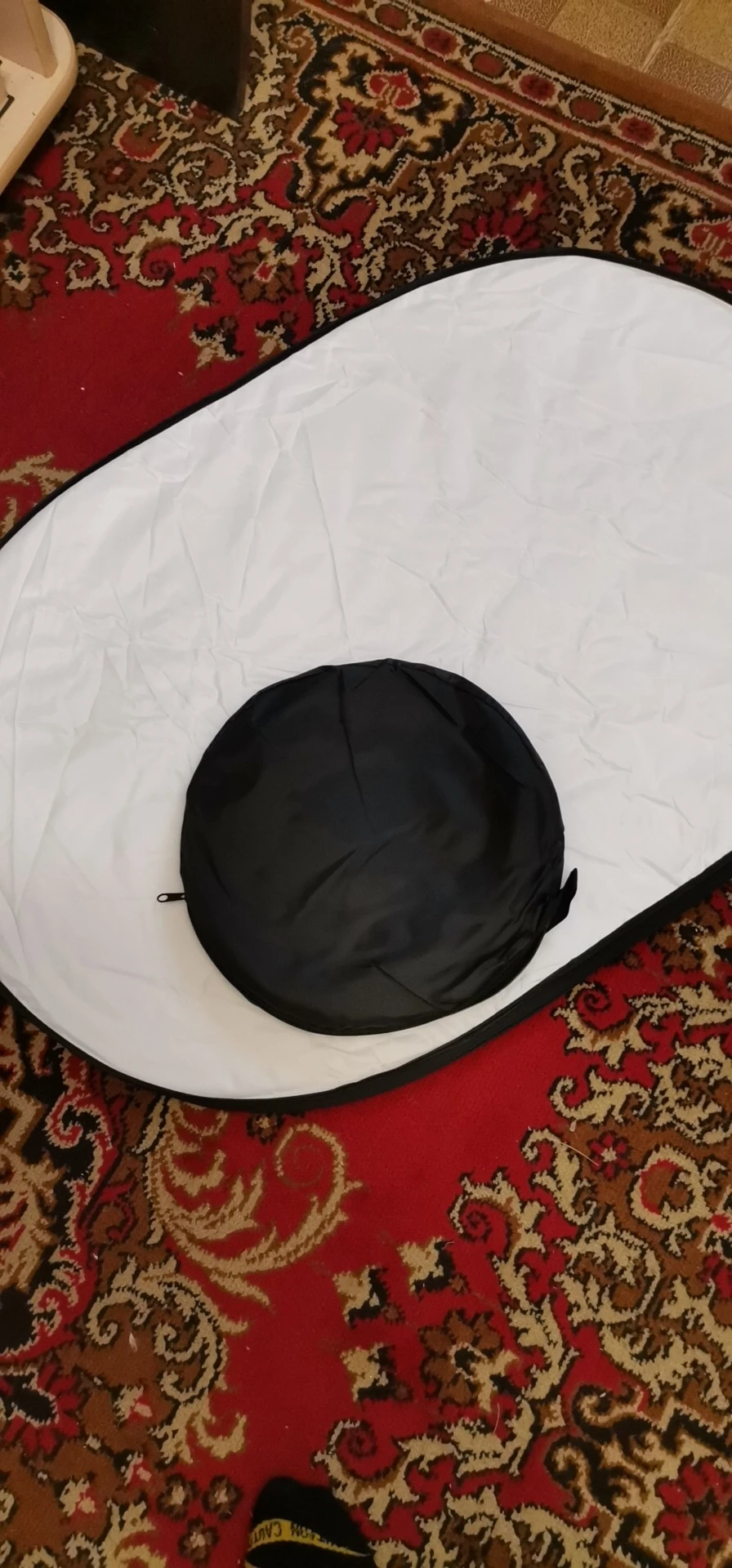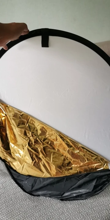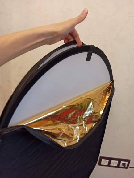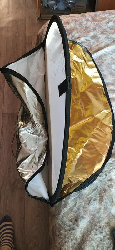 Дошёл отражатель за 11 дней. Единственное неудобство и на мой взгляд большое это переодичность цветов неудобно сшит, обычно на одной стороне серебристый переворачиваешь а там золотистый, что бы можно было быстро сделать холодный- тёплый свет, а на извороте чёрный белый, тут что бы отразить тёплый свет нужно выворачивать отражатель, потом обратно, это очень неудобно.