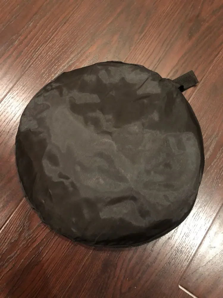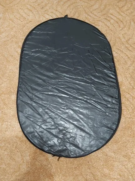 Очень хорошая вещь за эту цену. Купил за 700 рублей. Где-то конечно есть торчащие нитки, но для меня это не критично. Доволен потому, что за эти деньги продают в магазине совсем маленький отражатель. Золотой отражатель также присутствует, просто я не стал фотографировать его. Совет тем, кто купил - открывайте аккуратнее)