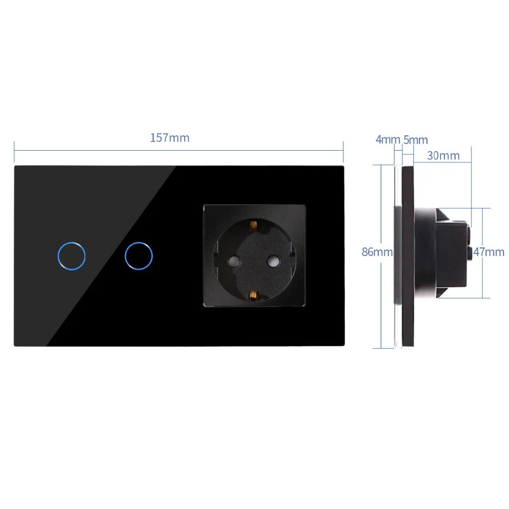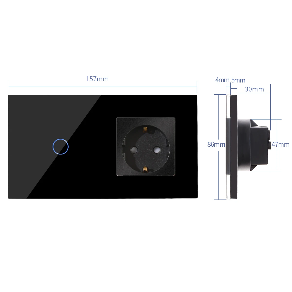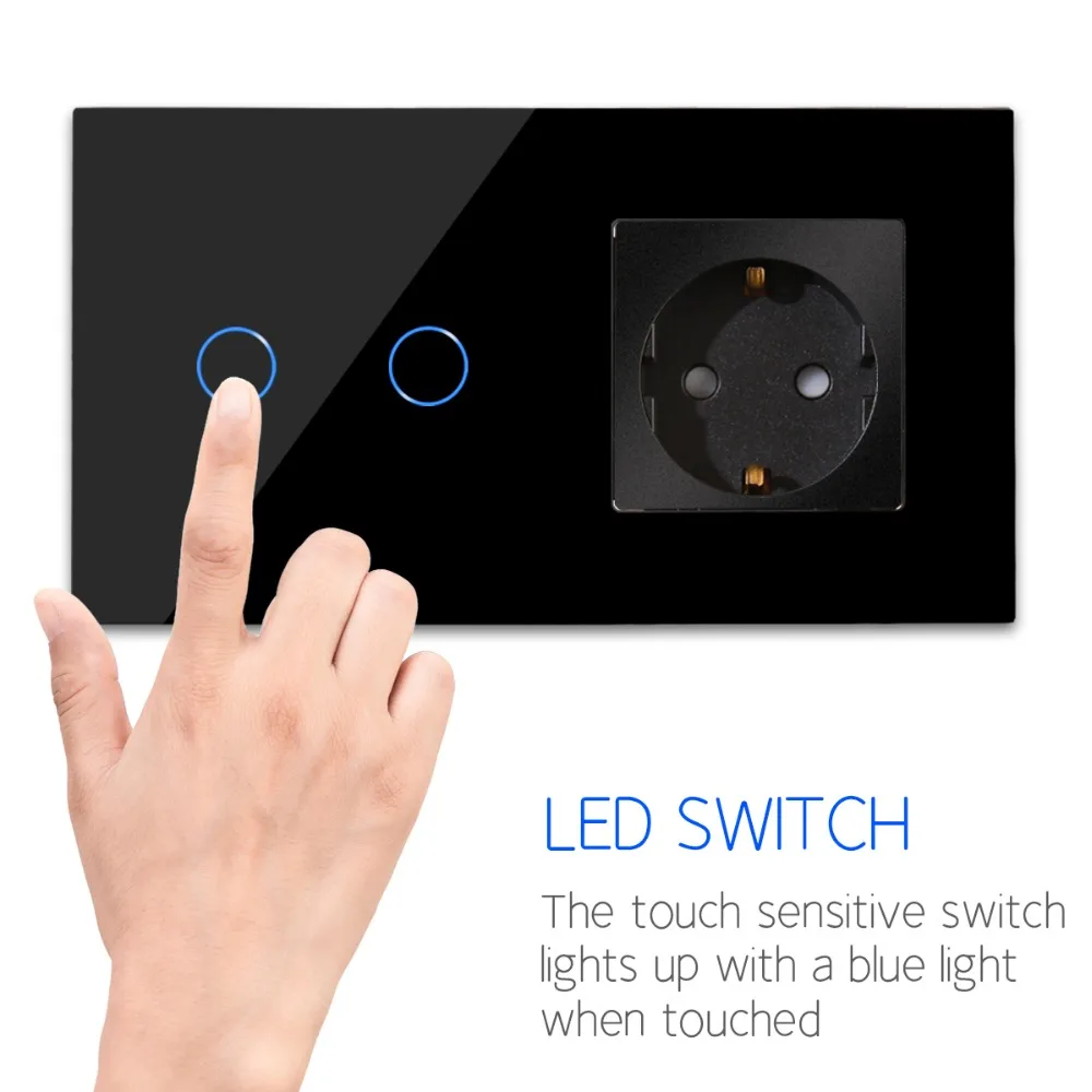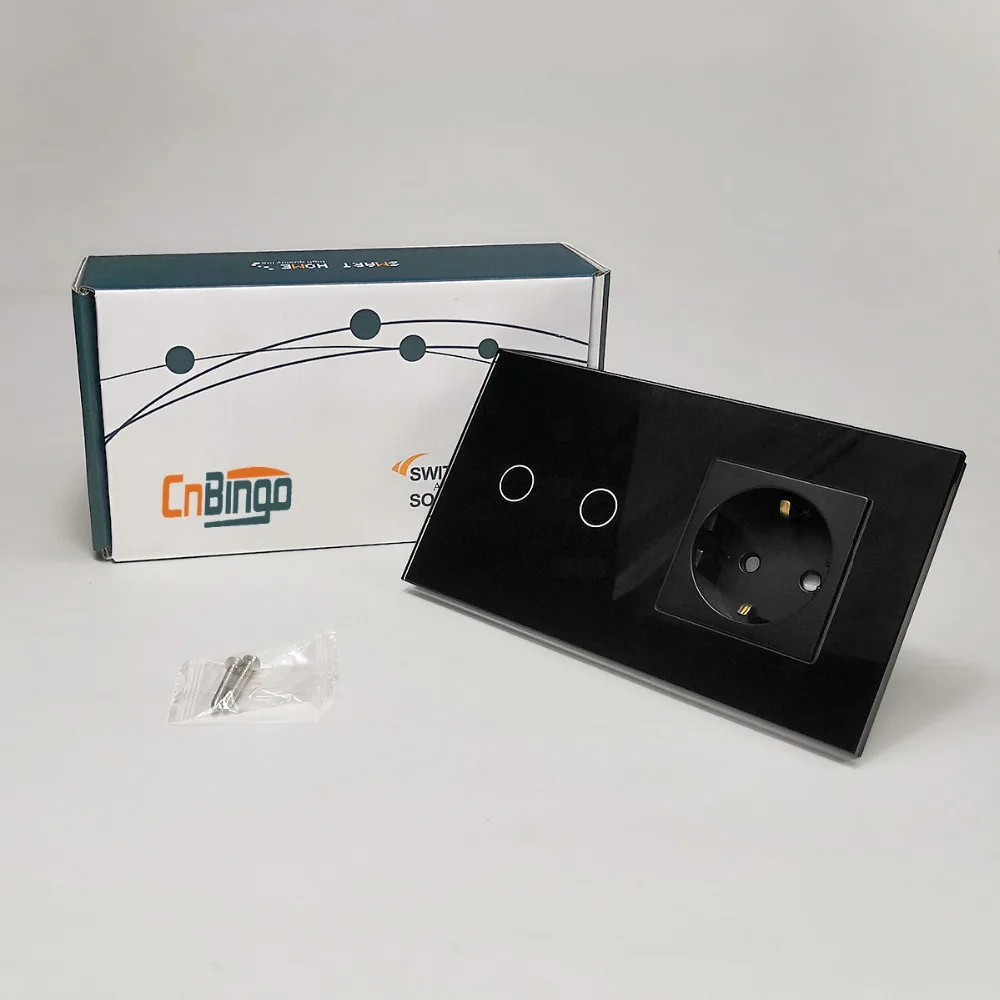 Переключатель сенсорный Bingoelec с розеткой европейского стандарта, 1 клавиша, 2 клавиши, 3 клавиши, 2 канала, черные, белые, золотые, прозрачные стеклянные панельные переключатели