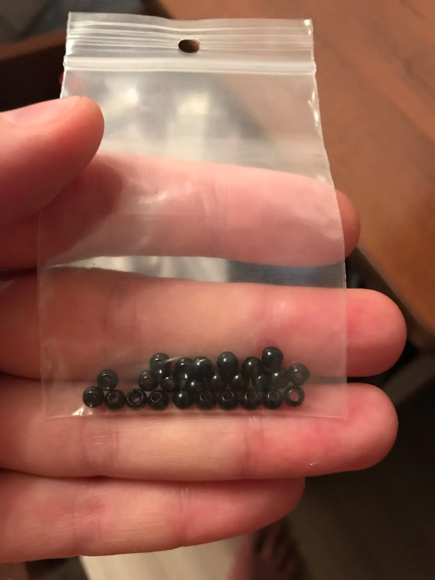 Кажется, что это настоящий Вольфрам. Проблема только в том, что на больших бусинах отверстие, которое лицом к крючьему глазу, довольно большое. Если вы планируете использовать большие бусины для большого веса маленьких крючков и сделать их быстро спускаться, вам может потребоваться закрепить бусины на месте с помощью проволоки и/или клея, чтобы они не скользили по крючковому глазу.