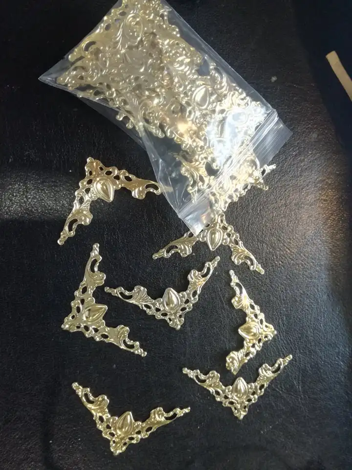 Латунный материал. Что-то деликатное и очень легкое в сгибании, не имеет винтов или puas, так что я думаю, что единственный способ положить их с клеем. Я не слишком уверен. Некоторые сложенные. И если он снимается, вы можете повторно прикрепить их. Все еще хорошо закончены и хорошее время приема.