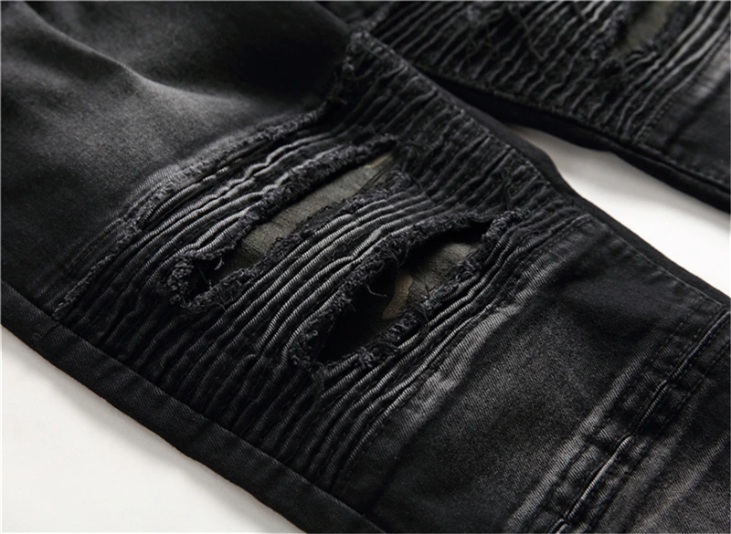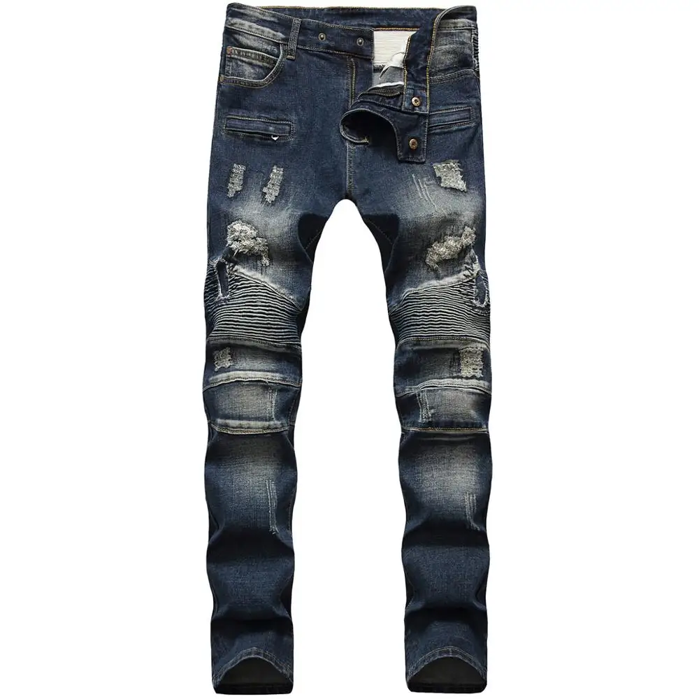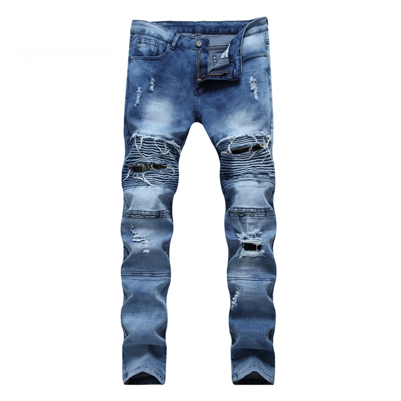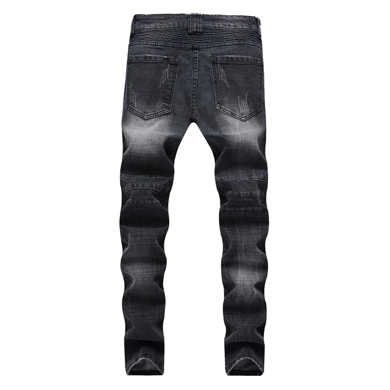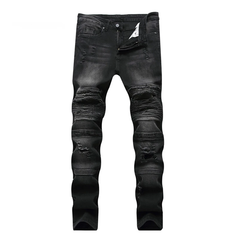 Модные женские джинсы с дырками, повседневные рваные Slim Fit рэп и штаны в стиле хип-хоп прямое классическое платье из плотного плиссированного джинсового мотобрюки байкер джинсы