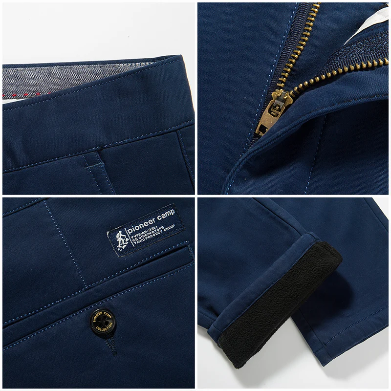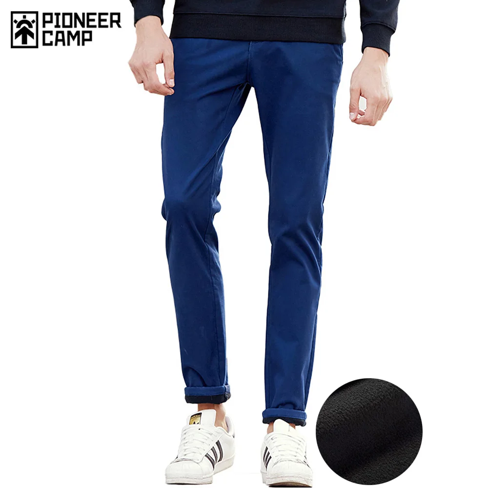 Pioneer Camp Новые повседневные зимние повседневные штаны мужские Качественные теплые флисовые мужские брюки Брендовые мужские плотные брюки цвета хаки, черный, синий, 625002