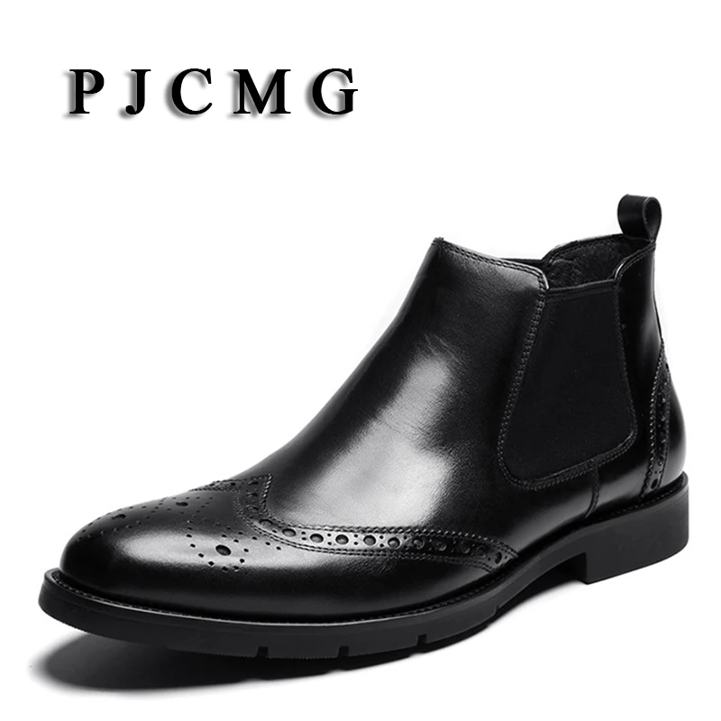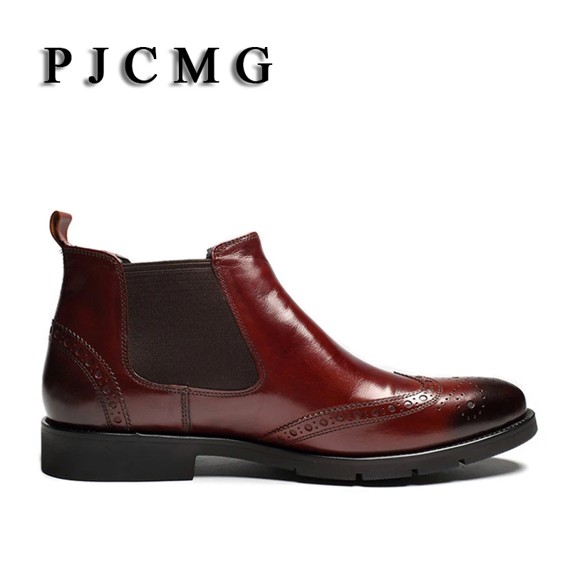 Мужские Ботильоны ручной работы PJCMG из натуральной кожи с резным носком