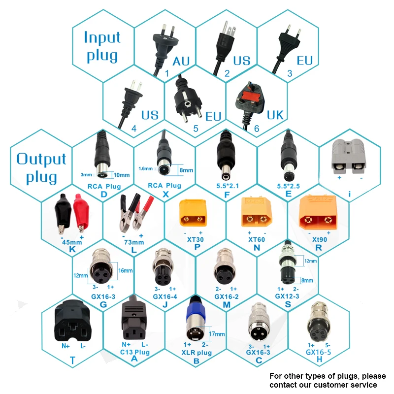 Пожалуйста, оставьте четкие слова о входных вилках переменного тока и выходных вилках постоянного тока, особенно «» и «F», в противном случае вы не можете быть отправлены, спасибо!