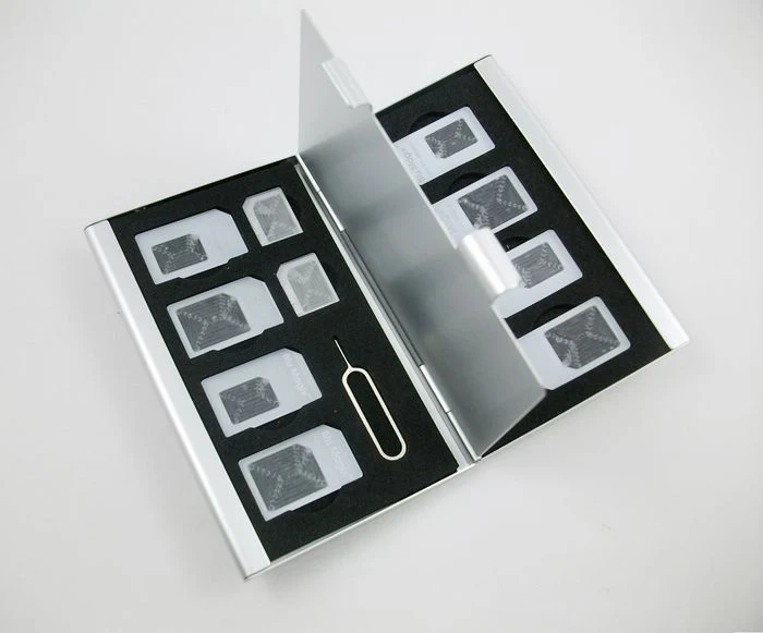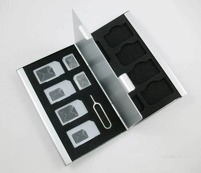 Алюминиевый чехол для 8 мини + 6 микрофонов SIM-карты памяти чехол для камеры micro SIM nano Противоударная камера водонепроницаемый держатель для хранения