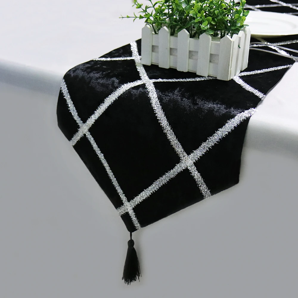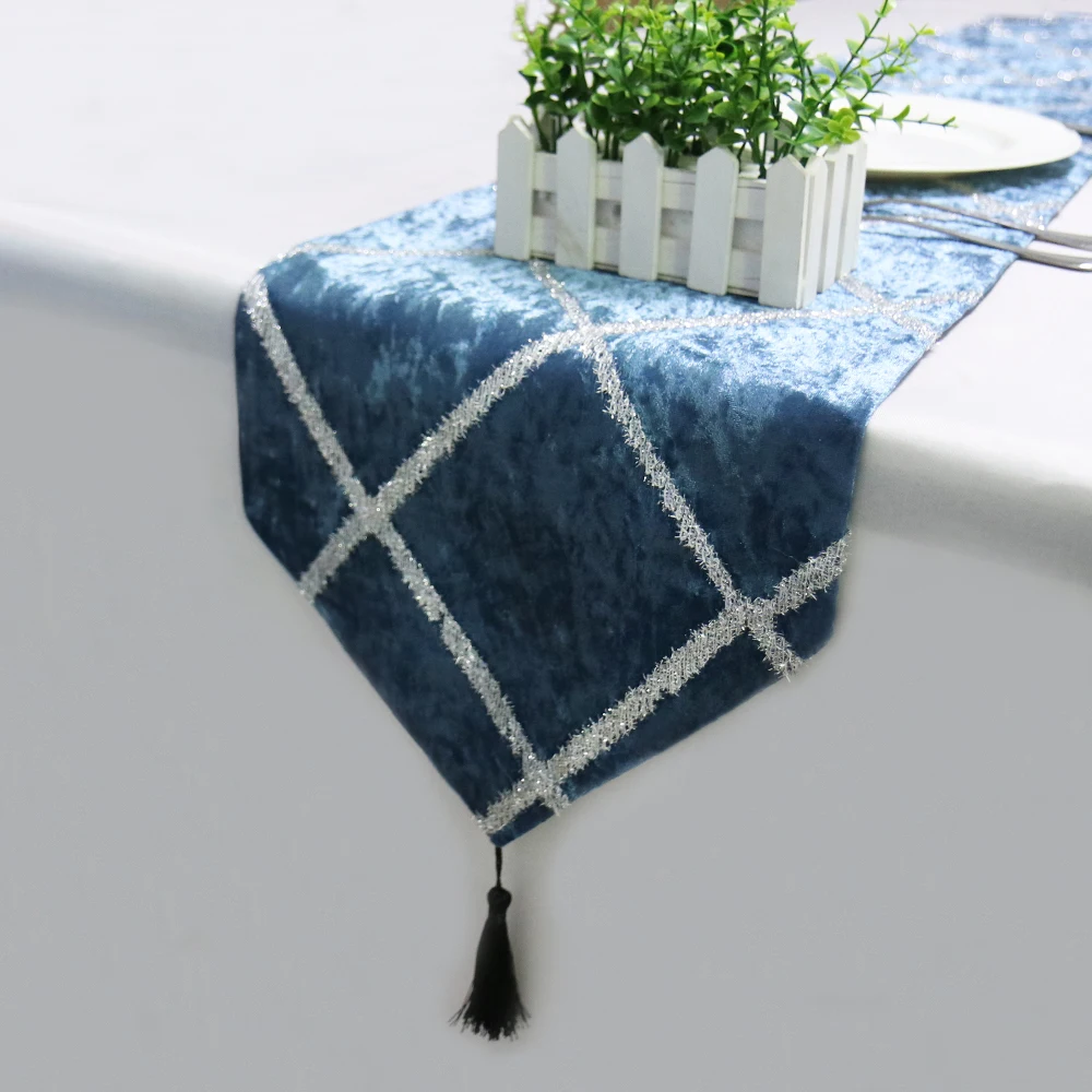 Роскошные модные ромбовидная решетка бархат настольная дорожка кроватные бегунки вечерние Свадебный декор в полоску конец стол кроватный для тканевые полотенца дорожка на стол