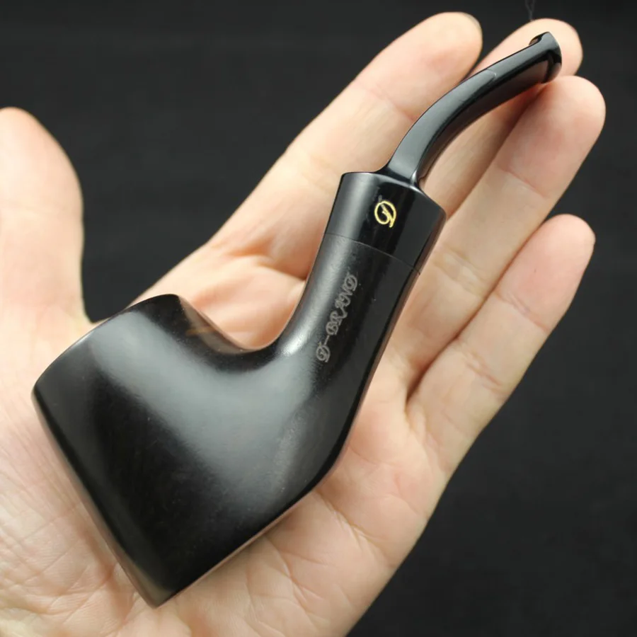 Трубка для курения ручной работы с плоским дном из натурального черного дерева круглая дымовая деревянная трубка для курения табака с фильтрами 10X 9 мм + чехол + держатель # ZP480