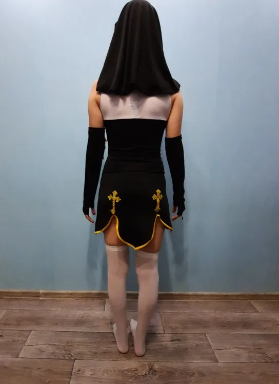 Пасха сексуальный костюм монахини Взрослые женщины Хэллоуин косплей фантазии девочка сестра вечерние с чулками Толстовка
