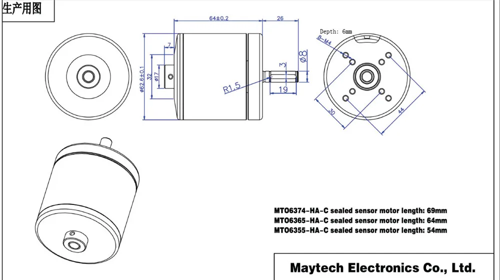 Maytech 6374 BLDC мотор электрический Лонгборд 170KV Герметичная крышка Электрический бесколлекторный сенсорный двигатель 8 мм вал боевых роботов