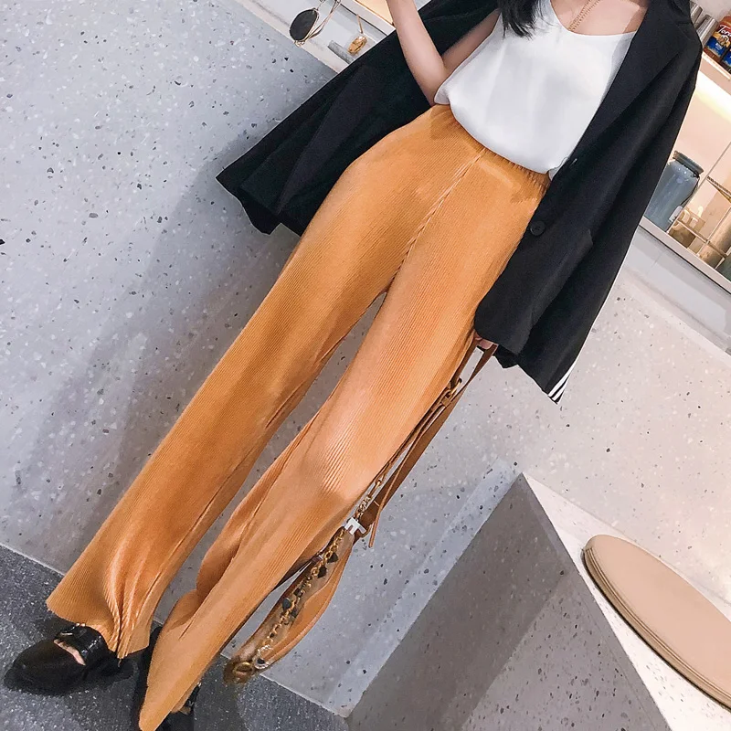 Новинка весна-лето 2021, модные женские винтажные широкие брюки с высокой талией, женские длинные свободные мягкие тонкие плиссированные брюки