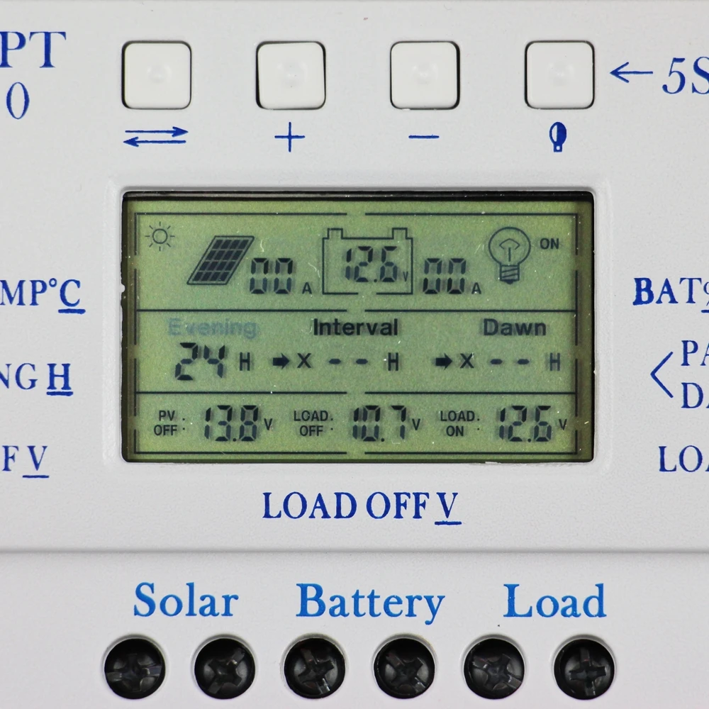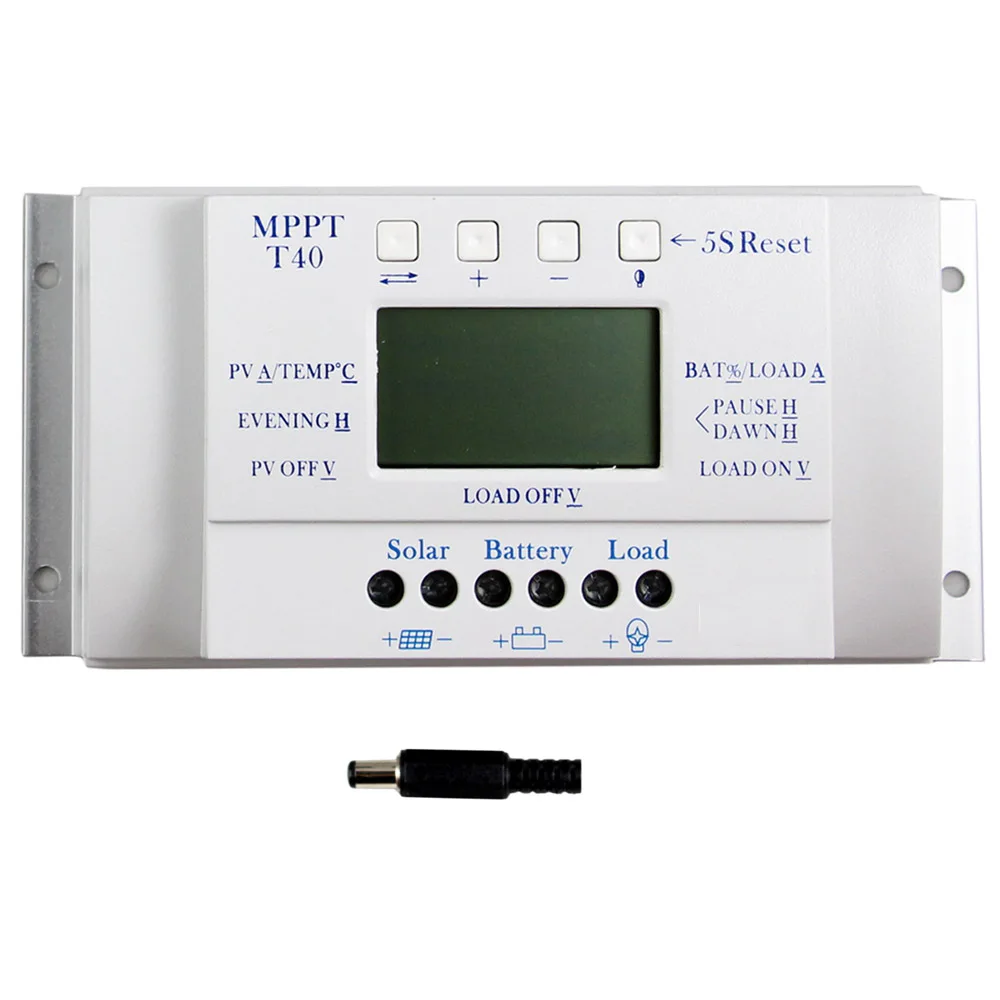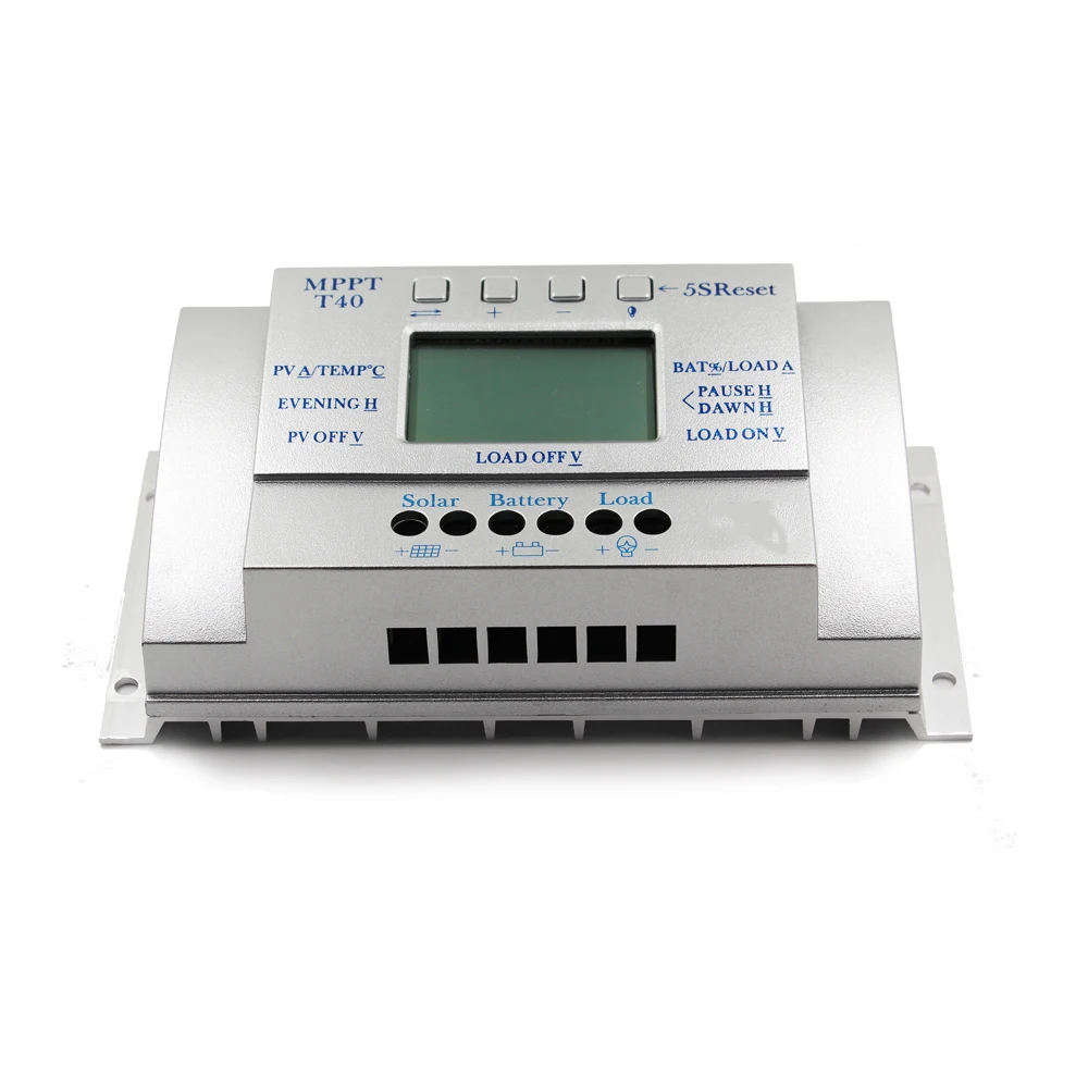 Регулятор заряда солнечной батареи MPPT T40, 40 А, 12 В, 24 В, автоматический ЖК-дисплей, контроллер с двойным таймером нагрузки для системы уличного светильник щения
